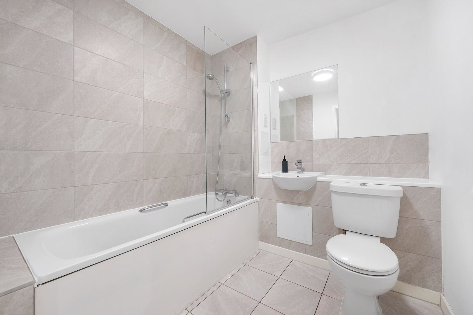 Both bedrooms are generous doubles, positioned at opposite ends of the apartment for maximum privacy. The principal bedroom benefits from built-in wardrobes and the luxury of an en-suite shower room, while the second bedroom, currently arranged as a nursery, provides versatility as a home office, guest room or comfortable double. Conveniently set in the centre of the home, just across from the second bedroom, the main bathroom offers a soothing environment ideal for a relaxing soak in the bathtub.