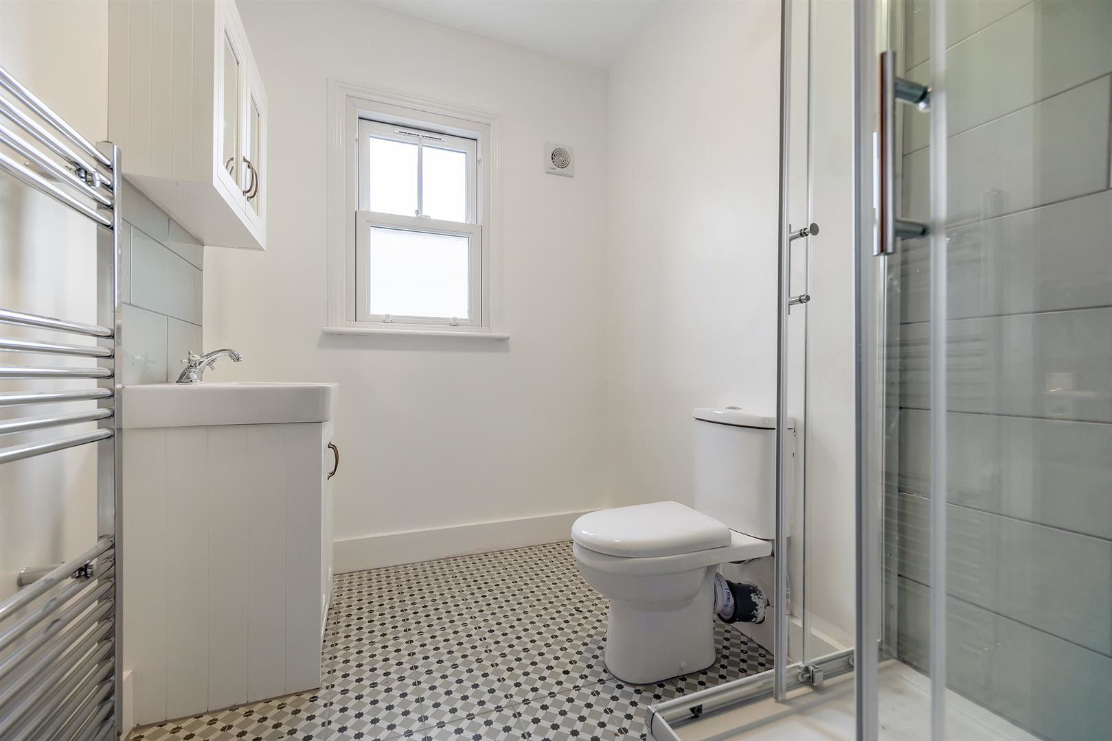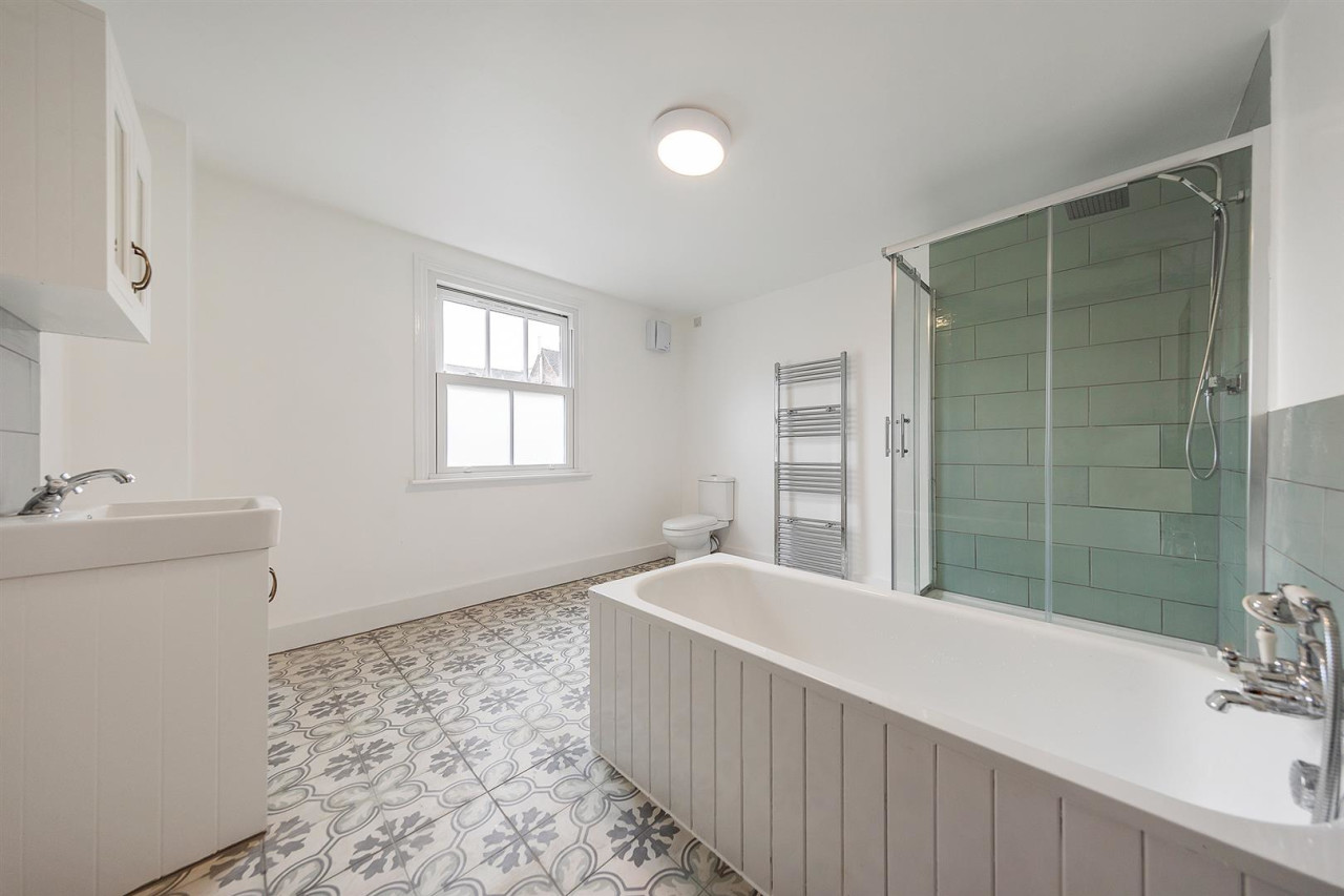 To the rear of the property is a striking eat-in kitchen and dining area, complete with modern fittings, skylights, and double doors that flood the space with natural light and provide seamless access to the garden an ideal space for social gatherings and family living. On the first floor, you'll find three well-sized double bedrooms, a contemporary shower room, and a separate WC. The second floor hosts two further double bedrooms and a sleek family bathroom.