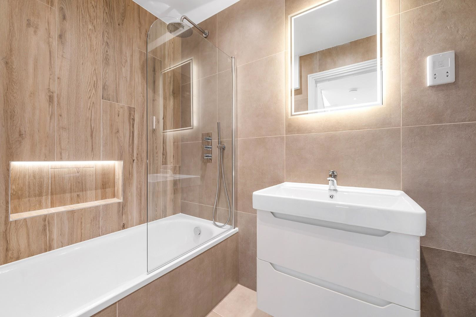 Conveniently set to serve the second bedroom and reception, the main bathroom features the same luxurious Spanish tiling and is equipped with a bathtub with overhead rain shower, ideal for a soak in the bubbles after a stroll around the Common. A dedicated utility room completes the home, set on the upper floor and keeping the laundry neatly and quietly tucked away from the social spaces.