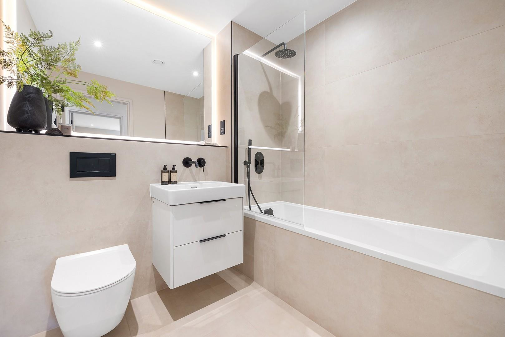 With over 820 square feet of internal space this sizeable first floor apartment boasts a wonderfully bright and airy open-plan reception room with modern features such as down lighting, large windows and softly toned flooring. A fantastic entertaining space sure to wow guests, there is comfortable room to lounge in style, dine around a large table or cook up a tasty treat in the superb kitchen. Designed and manufactured in Italy, the kitchen integrates Bosch appliances and generous storage within contemporary cabinetry, topped with a quartz work surface and splashback, and finished with a Franke Maris black tap.