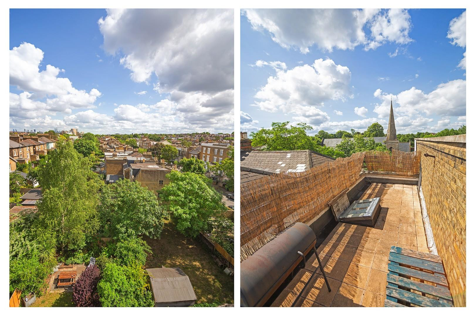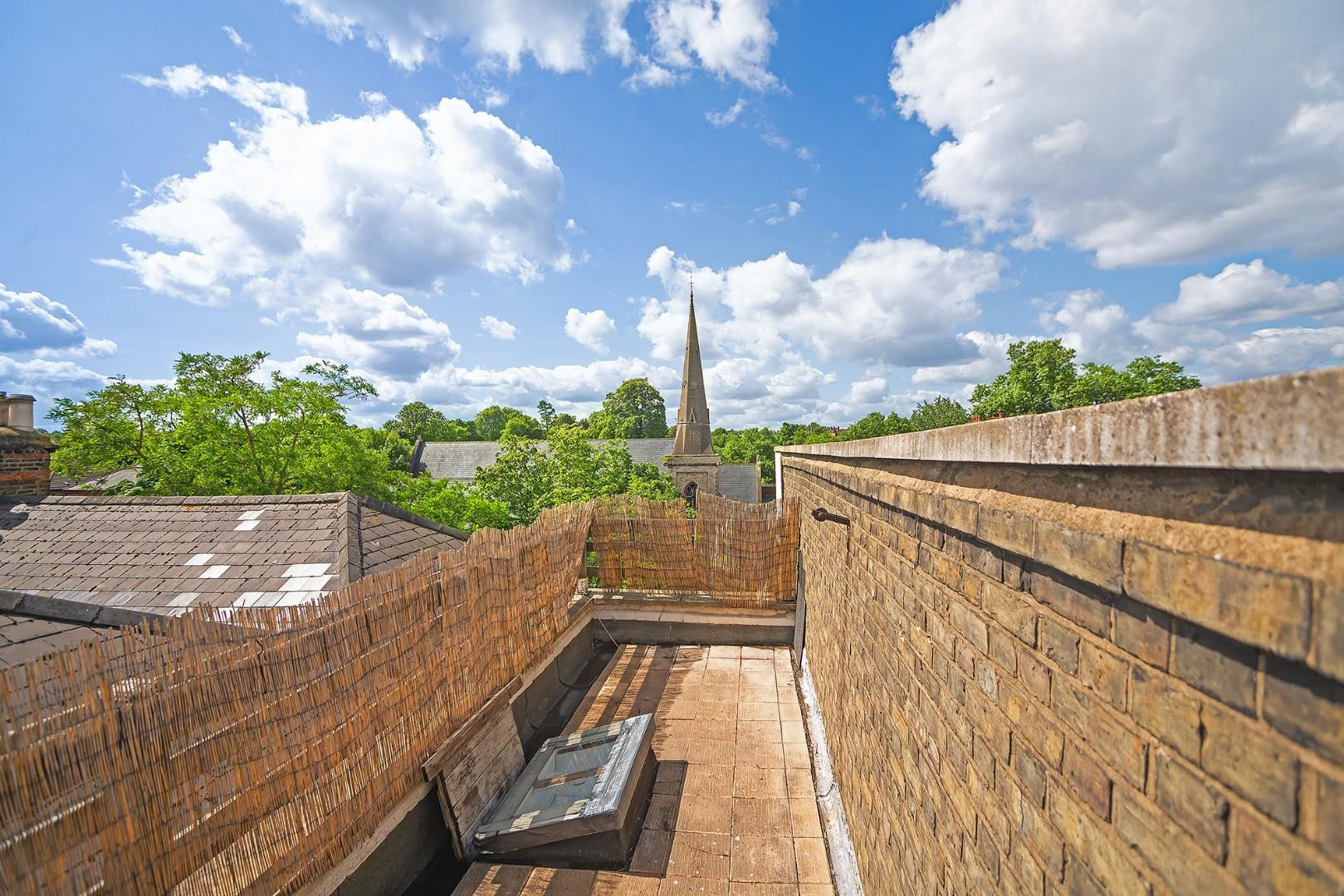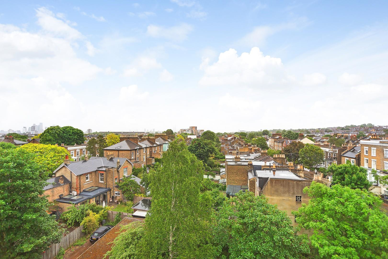 The layout of the flat could be altered depending on the new purchaser's search requirements with four rooms that have good dimensions. Three of the rooms can be used as double bedrooms with a separate spacious reception room. The kitchen is well-equipped with plenty of storage space on offer and a convenient serving hatch into the hallway. The property benefits from high ceilings, a feature fireplace, built-in storage and views over the treeline in Brockwell Park opposite and the neighbouring rooftops towards central London to the rear. The bathroom has a convenient utility area with washing machine and tumble dryer. A ladder leads through a ceiling hatch to a secluded private demised outside area at the top of the building. A fantastic space to dine alfresco, host BBQ’s or just soak in the stunning views throughout the warmer months of the year.