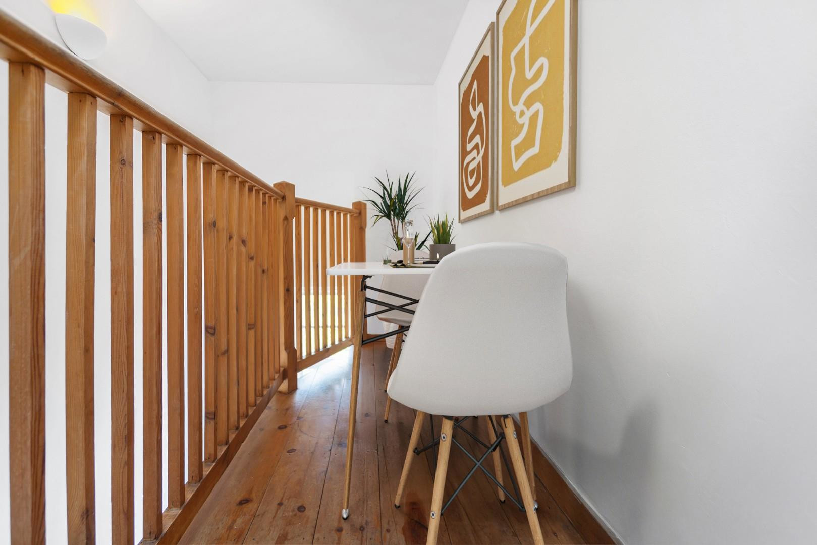 Nestled on the upper floor, the property is wonderfully private, with almost 900 square feet of internal space. Natural light is a recurring theme within the property with multiple sash windows on either side of the property, creating a bright and inviting atmosphere throughout. Initial stairs lead to a central hallway which feeds all the rooms and a characterful raised seating area that could be used as a space to dine or work from home.