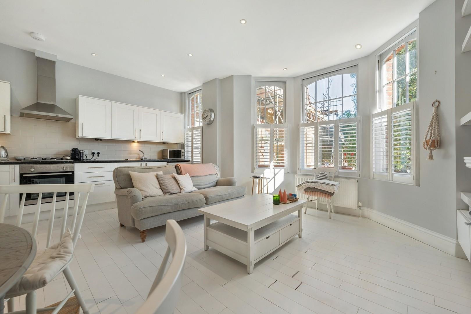 Natural light is a reoccurring theme in this property and the open plan living space is no exception, with a large bay window and high ceilings, it’s a perfect space for relaxing, dining and entertaining guests. The kitchen is fully equipped, with partially integrated appliances and a smart finish. There is ample space for dining as well as a cosy lounge area. Sitting adjacent to the reception room is a comfortable double bedroom which also benefits from an abundance of light and high ceilings. The second double bedroom is nestled at the rear of the property, quietly overlooking the gardens below. A tasteful, contemporary bathroom completes this lovely property. The property has lovely views from the living area down Trent Road, the building is end of terrace and there aren’t any buildings directly opposite, which really adds to the light and airy atmosphere throughout.