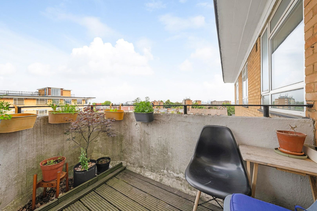 Boasting sweeping views including the London skyline in the distance, this low-maintenance terrace provides a fantastic spot to unwind or dine al-fresco, capturing sunsets over the rooftops and the city in all its grandeur as day turns to dusk.