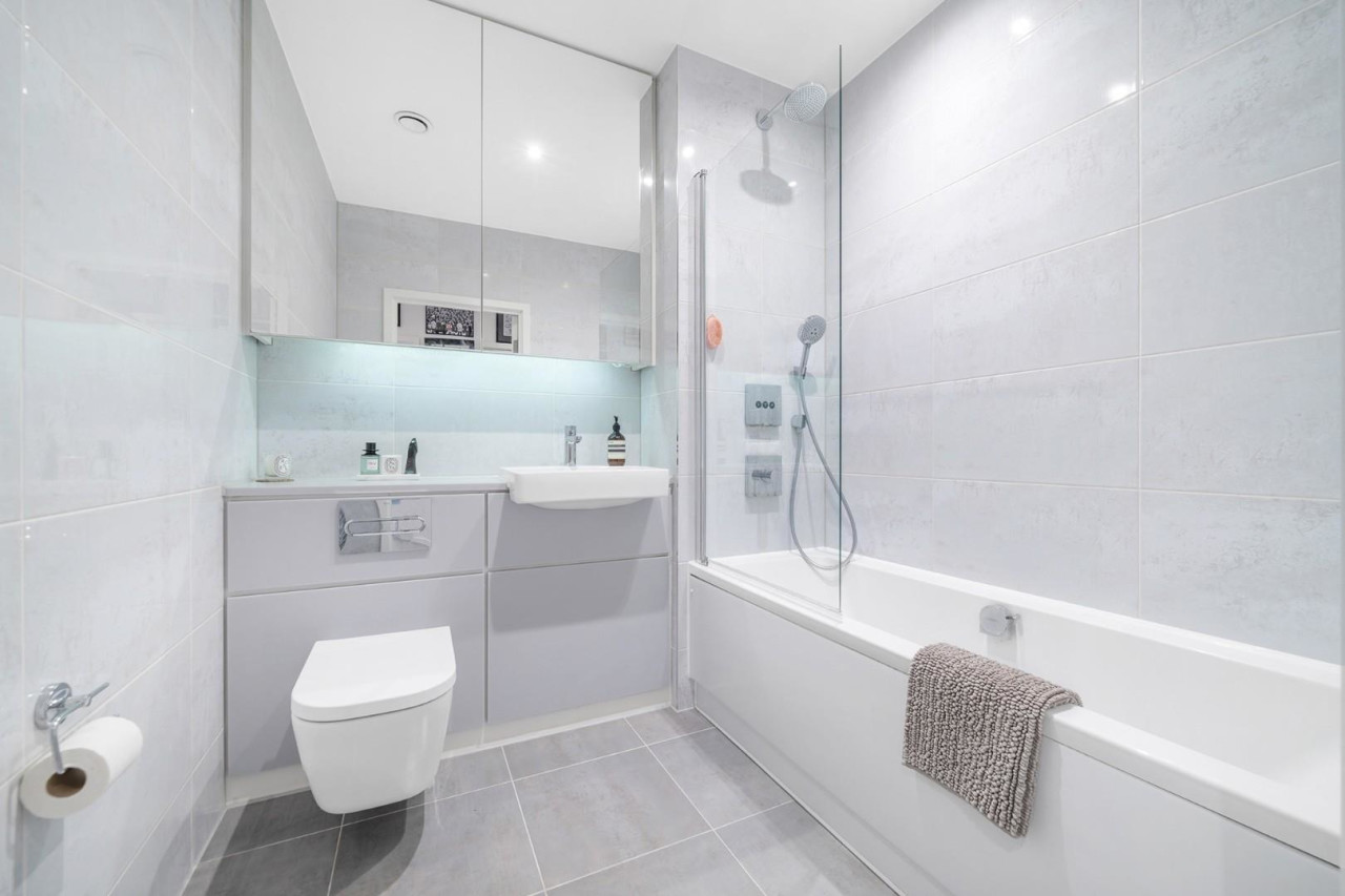Completing the interior of the property is a stylish bathroom, finished to a high standard with a luxurious double-ended bath, overhead rain shower, and mirrored storage. Underfloor heating runs throughout the apartment, providing a comfortable and energy-efficient home.