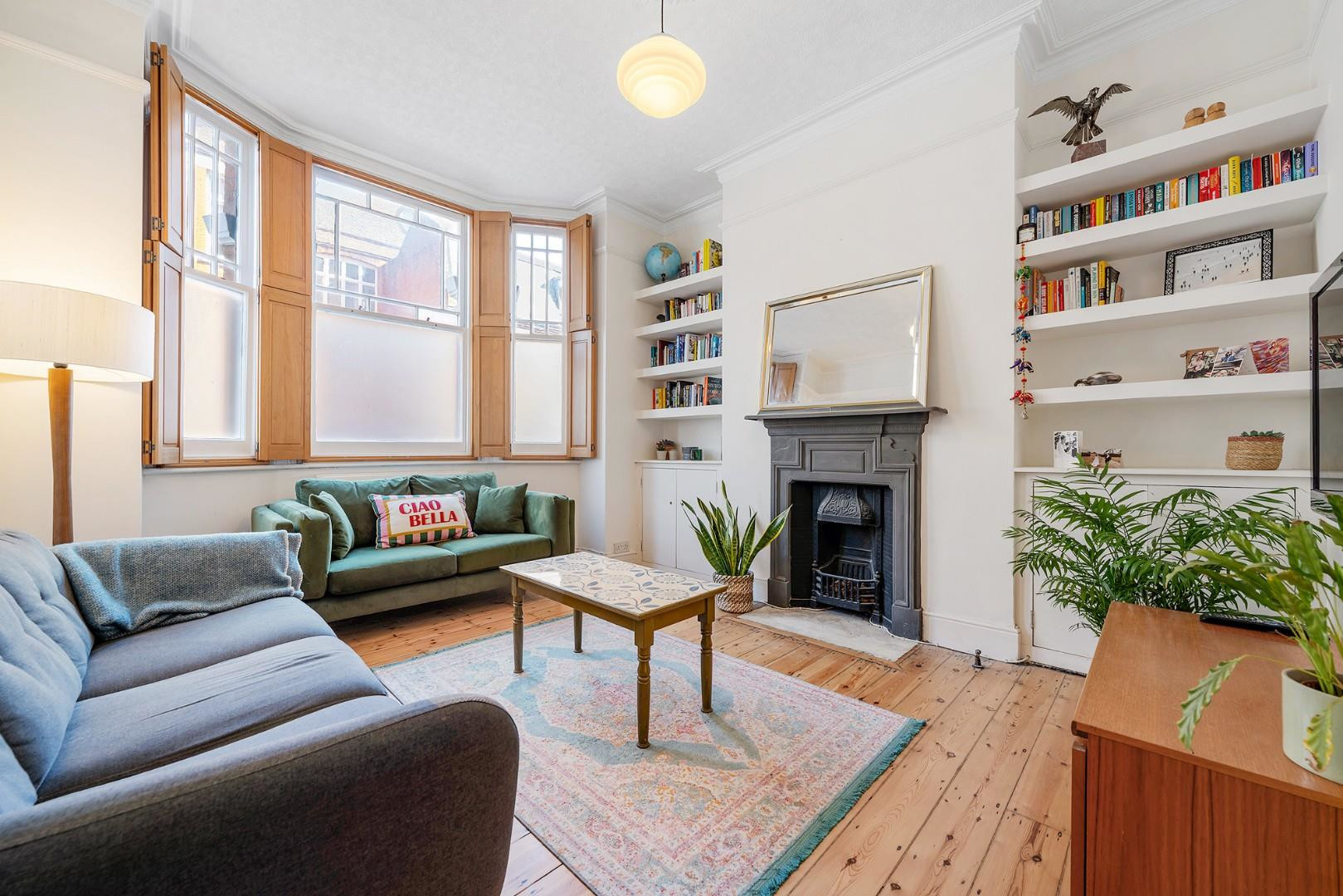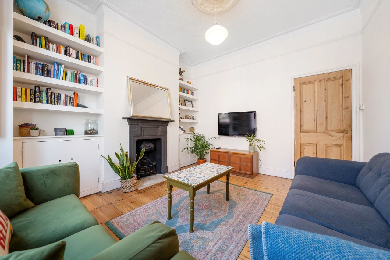 Upon entry, you're welcomed into a bright and airy hallway that connects the entire home. At the front of the property is a spacious and beautifully presented reception room, where a charming bay window fitted with stylish wooden shutters floods the space with natural light, enhancing the sense of openness. Brimming with period character, the room features a decorative fireplace framed by built-in cabinetry and shelving in the alcoves, high ceilings, ornate cornicing, a picture rail, and an elegant ceiling rose. The generous ceiling height adds to the room’s sense of grandeur, while the neutral décor creates a calm and inviting atmosphere. Striking the perfect balance between elegance and comfort, this reception room is ideal for both relaxing and entertaining.