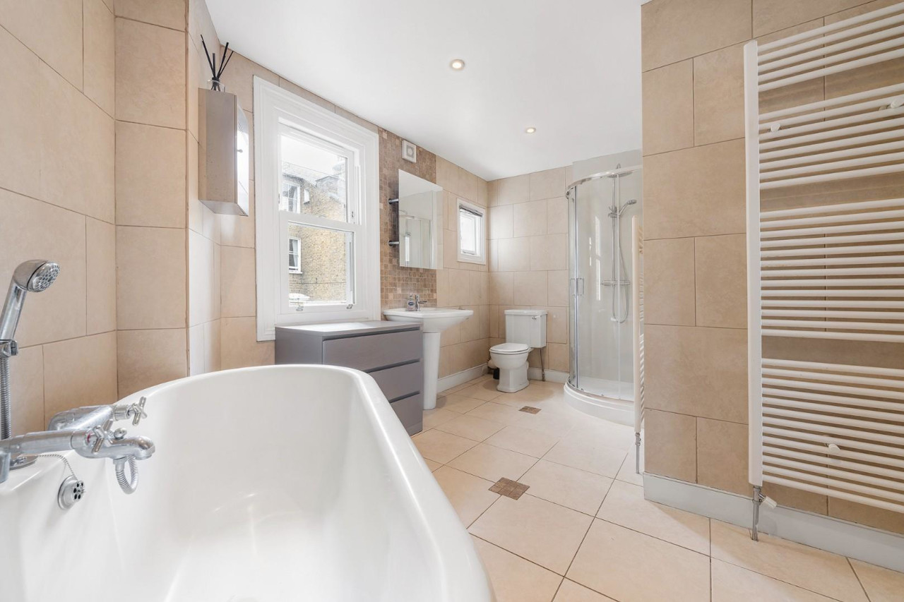 The principal bedroom is a real highlight, an expansive double boasting dual sash windows and an elegant open staircase leading down to a luxurious en-suite. This spa-like bathroom is beautifully appointed with a roll-top bath, separate walk-in shower, generous storage and calming neutral tiling, creating a spa-like retreat. The layout of the home ensures a welcome sense of privacy between the bedrooms, with the second bedroom currently serving as a soothing nursery. Featuring large fitted wardrobes, this versatile room could equally function as a guest bedroom, home office or hobby space, depending on requirements. A second bathroom sits conveniently across the hall, complete with a walk-in shower, heated towel rail and crisp white tiling. The location is superb: situated on the curve of Kendoa Road, the property enjoys a peaceful residential feel whilst being enviably close to the vibrant buzz of Clapham High Street. The wide array of bars, restaurants and amenities of Clapham are right on the doorstep, with the cafes and boutique shops of Clapham Old Town and Abbeville Village also within easy reach. The ever-popular Venn Street Market is perfect for a Saturday browse, whilst the eateries and nightlife of Acre Lane offer a wealth of options just a short stroll away. For green open space, Clapham Common is within a few minutes’ walk, offering a tranquil escape from city life.