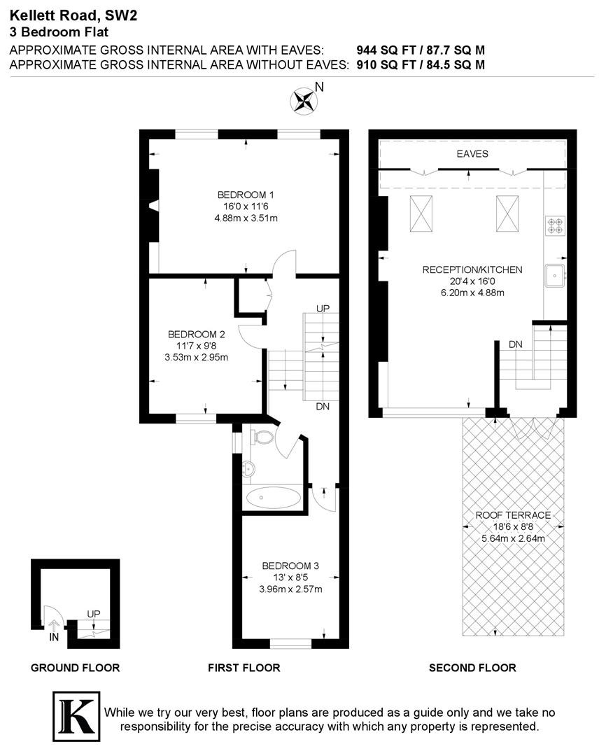 Keating Estates are proud to present to market an exceptional three double bedroom split-level penthouse with a stunning South-facing roof terrace, set over the top two floors of an attractive Victorian conversion on Kellett Road, a desirable residential street moments from the heart of Brixton and within easy reach of Herne Hill and Brockwell Park.