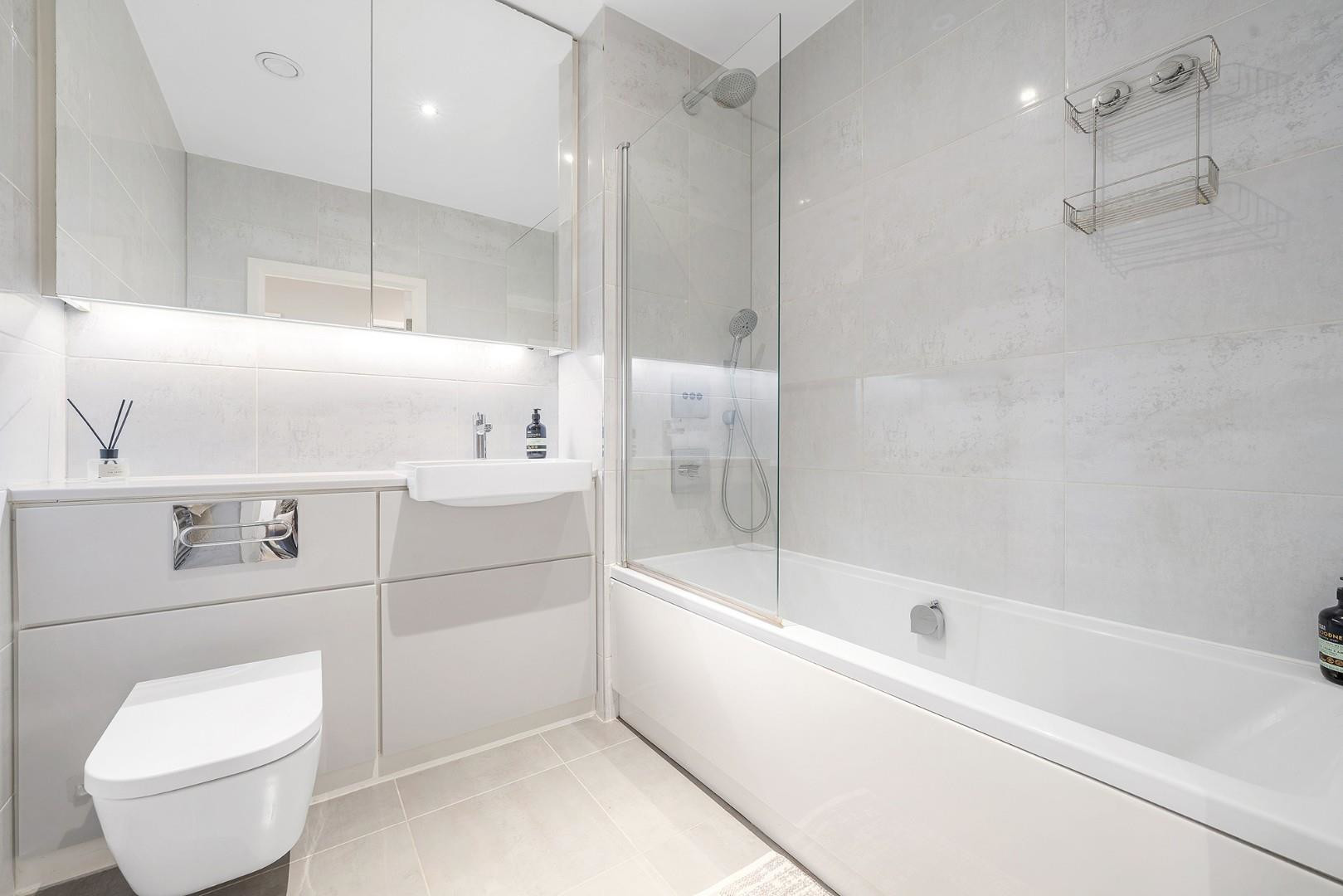 The impressive bedroom is a well-proportioned double, neutrally presented with built-in wardrobes, and also boasting direct access out to the terrace, perfect for a morning coffee or relaxing nightcap. Completing the interior is a stylish bathroom, finished to a high standard with a luxurious double-ended bath, overhead shower, and mirrored storage. Underfloor heating runs throughout the apartment, providing a comfortable and energy-efficient home.