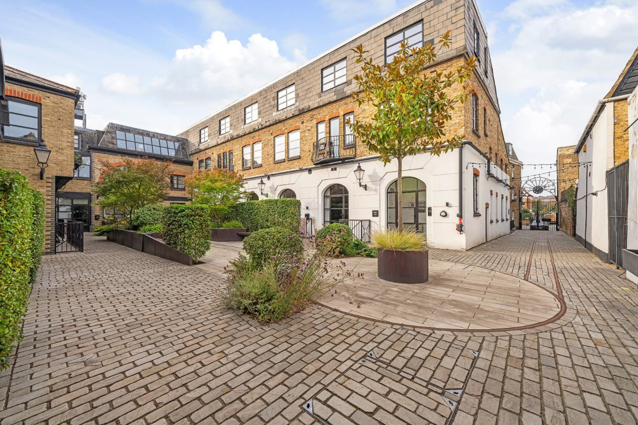 Keating Estates are proud to present to market a striking and unique one bedroom apartment with a private garden terrace and its own front door, set within the exclusive gated development of The Metalworks in the heart of Clapham Old Town. Designed by award-winning developers, The Metalworks has transformed a historic metal workshop into an architecturally remarkable collection of loft-style homes, seamlessly blending industrial heritage with contemporary luxury. The site was originally occupied by Art Metal Works, established in 1904 by William Bainbridge Reynolds, an important figure in the metalworking world, best known for works such as the Kitchener Chapel gates at St. Paul’s Cathedral.
