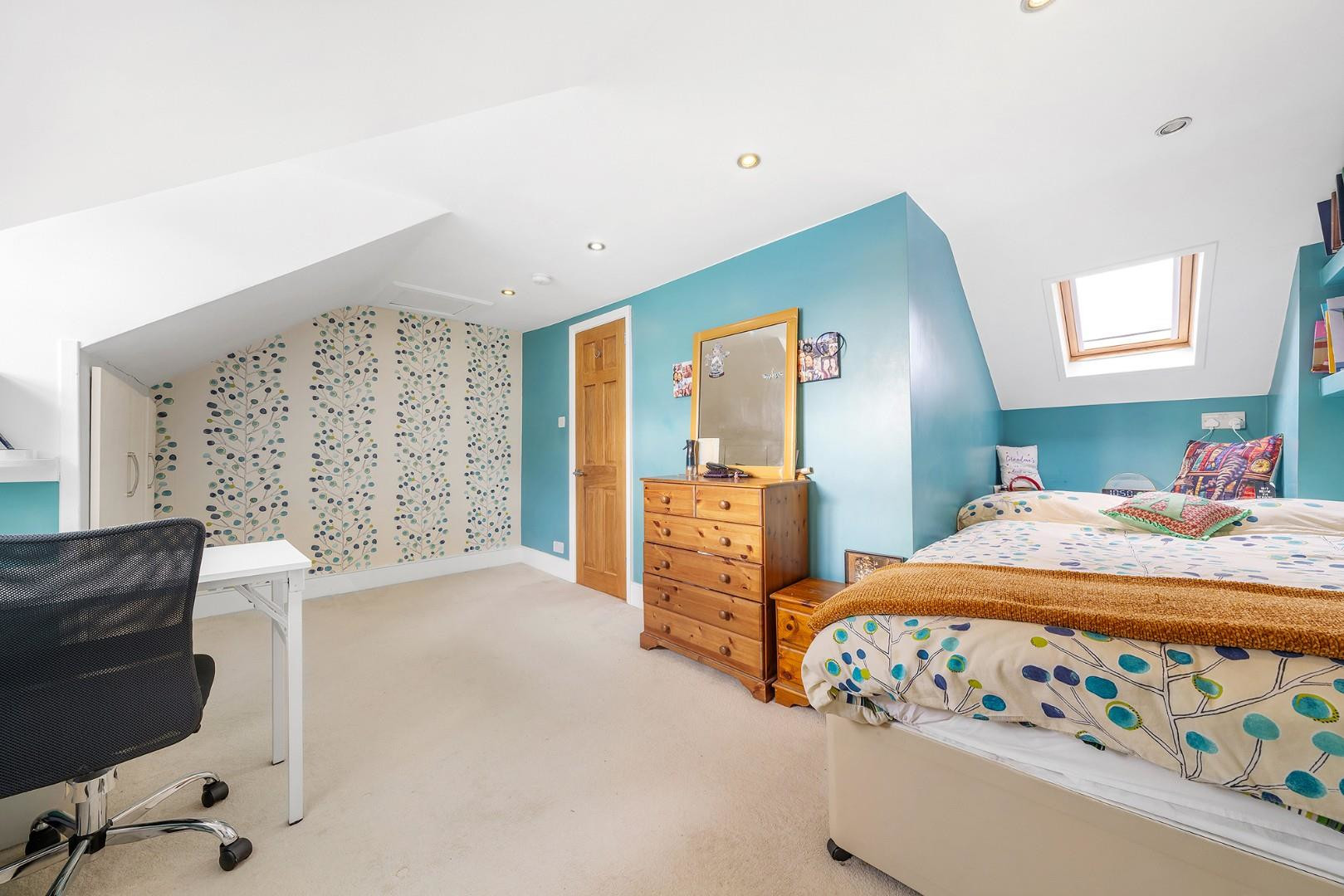 The ground floor opens with a welcoming hallway leading to a formal reception room at the front of the house. This elegant space features a fireplace and a large sash window, creating a calm and inviting atmosphere perfect for relaxing or entertaining. Also on this floor is the fourth bedroom, currently used as a study, alongside a family bathroom with both a separate bathtub and a generous shower cubicle, ideal for busy households.