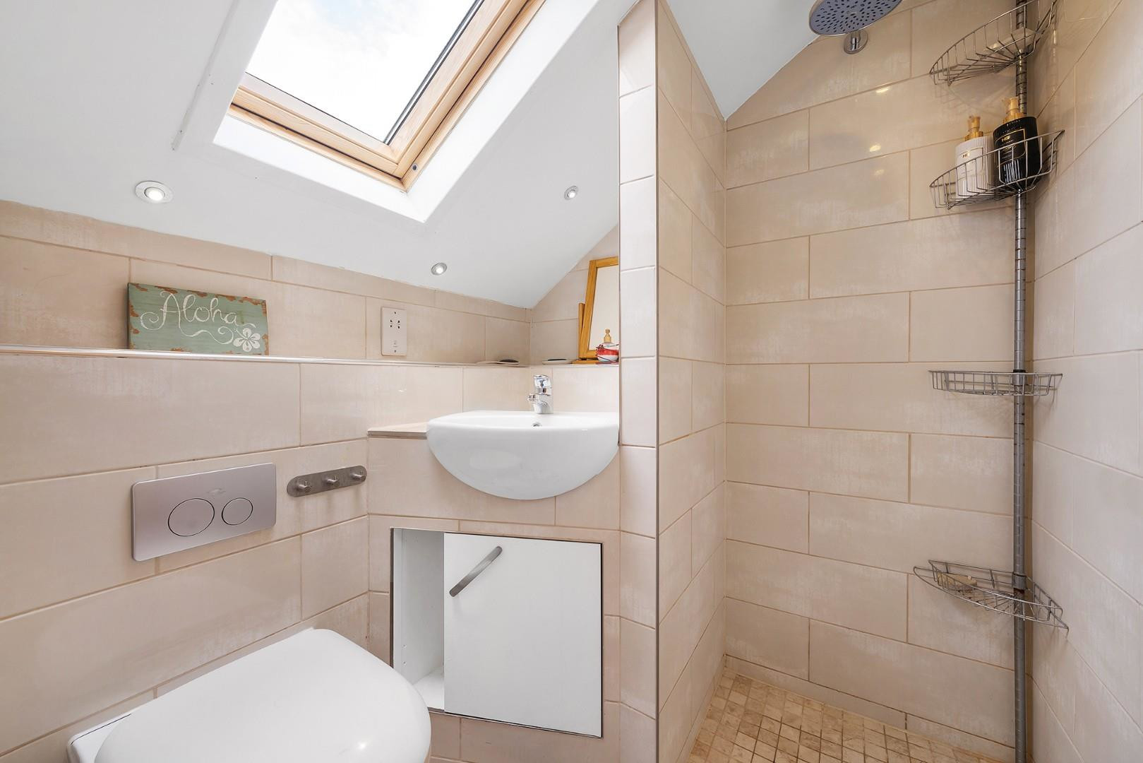 On the top floor, the second bedroom is a spacious, light-filled retreat with ample storage, accompanied by a second bathroom with a modern shower cubicle, providing convenience and privacy for family or guests. The layout ensures each bedroom is well-separated, offering flexibility and an excellent sense of privacy.
