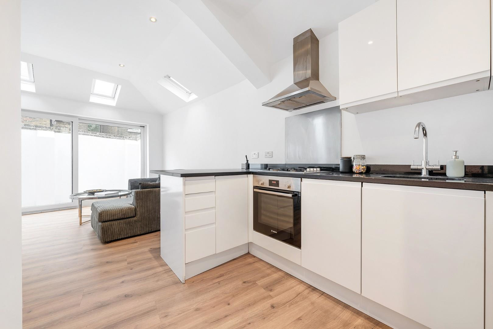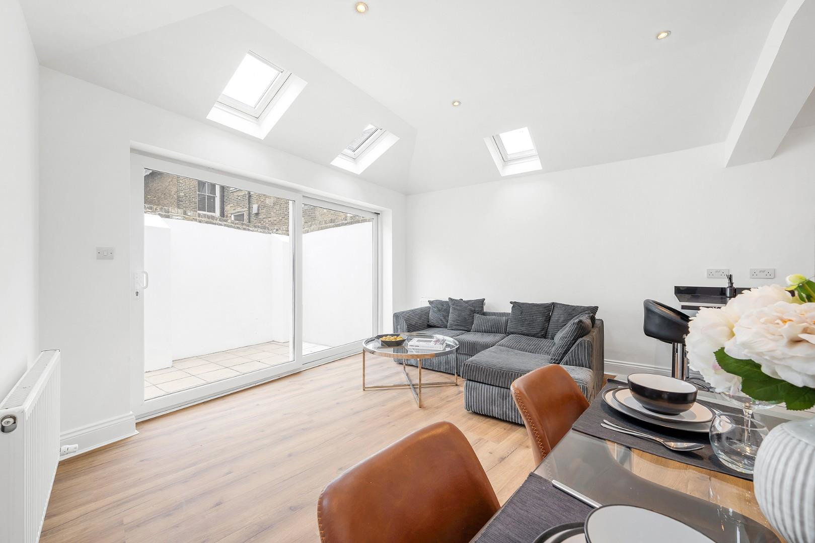 Sliding doors open directly onto the private garden, paved for ease of maintenance and framed by a white rendered wall, offering both privacy and shelter. This delightful outdoor space is ready to be enjoyed immediately, whether dressed with potted plants or landscaped into your own leafy retreat — a wonderful extension of the living area for al fresco dining, hosting BBQs or quiet relaxation. The vast greenery of Tooting Bec common is also nearby.