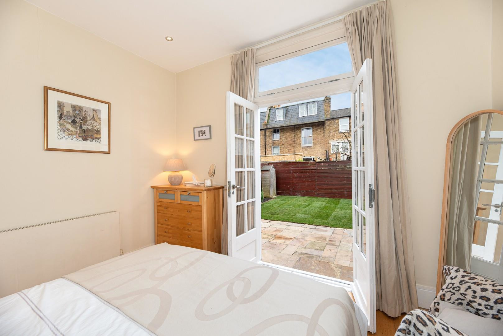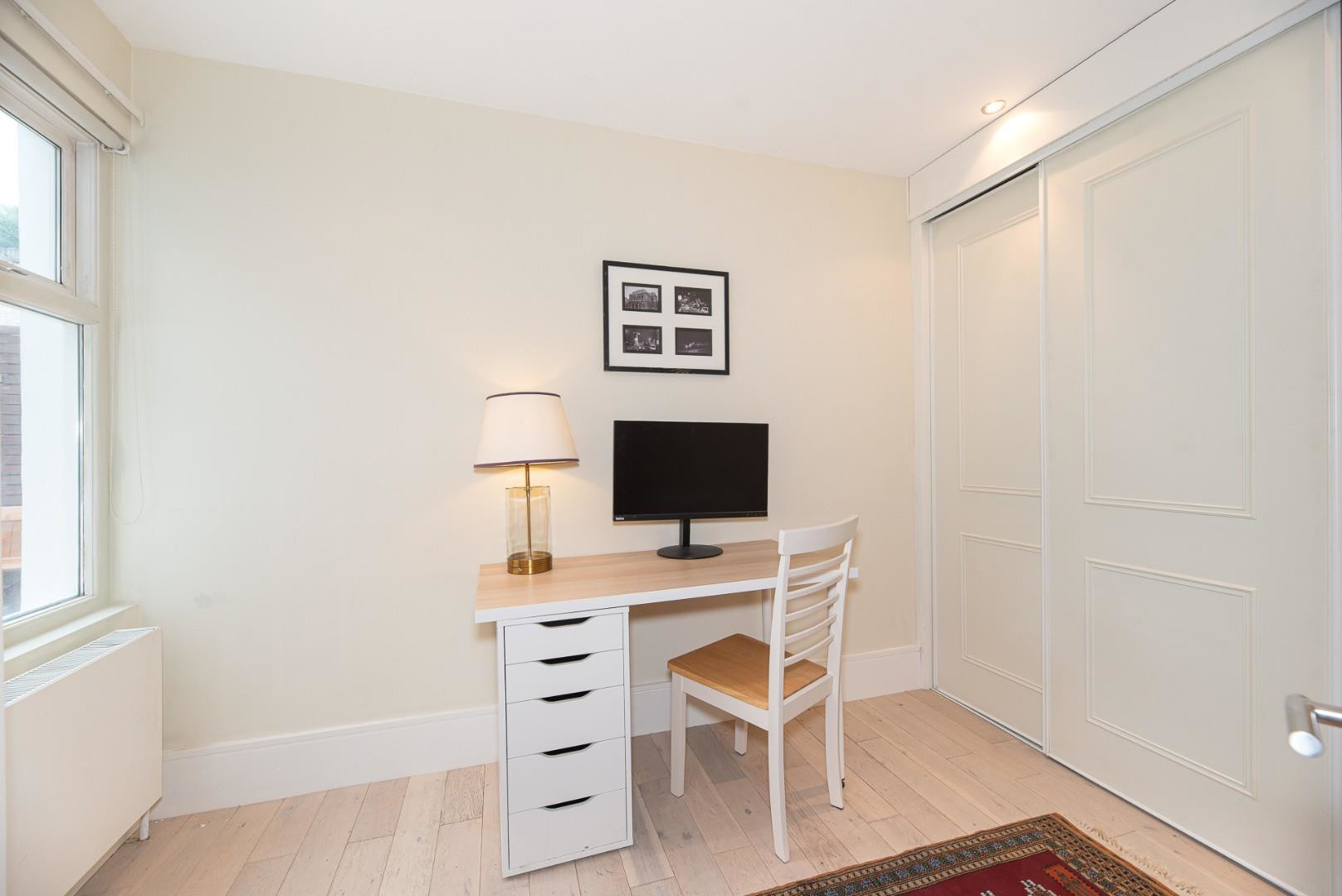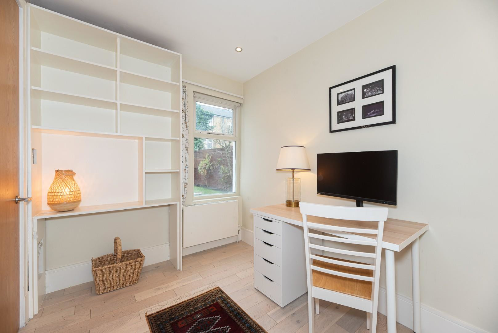 Both double bedrooms are peacefully positioned at the rear of the property and presented in calming neutral tones, each with fitted wardrobes. The principal bedroom is particularly spacious and benefits from charming French doors opening directly onto the garden—a serene backdrop for slow weekend mornings or evening drinks under the stars. The second bedroom, currently arranged as a home office, is a versatile room which can be re-purposed to suit needs, currently also equipped with fitted wardrobes.