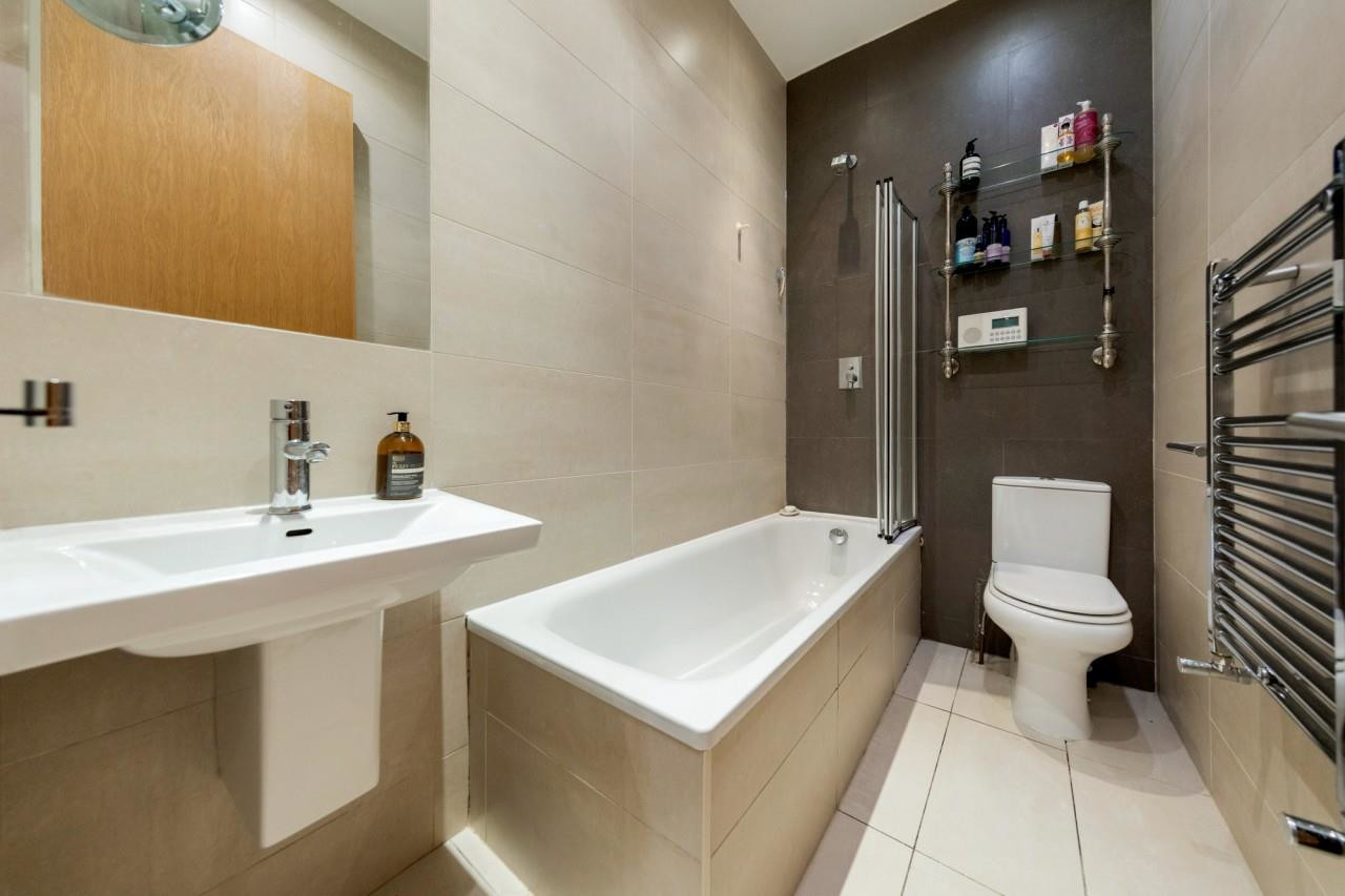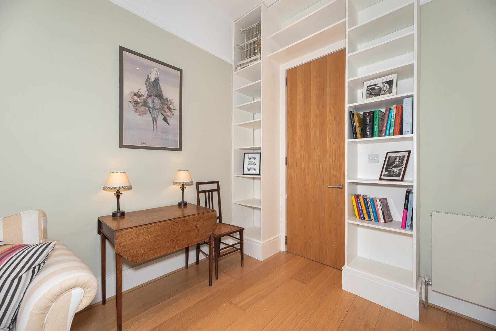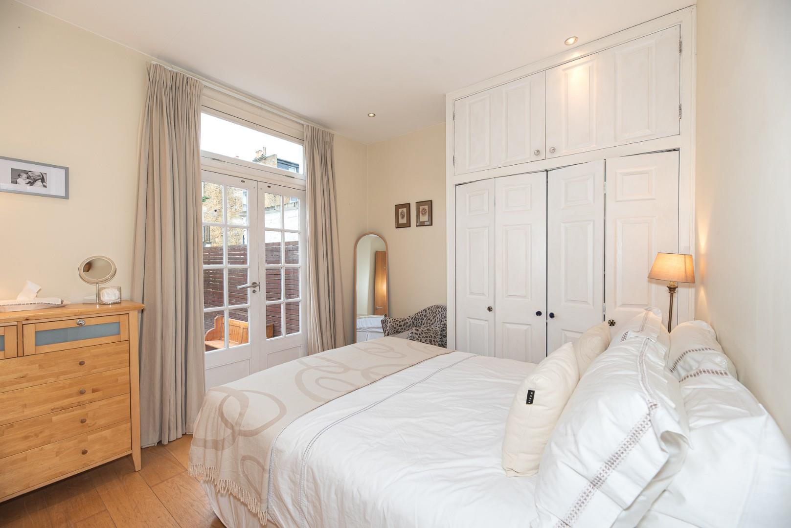 Both double bedrooms are peacefully positioned at the rear of the property and presented in calming neutral tones, each with fitted wardrobes. The principal bedroom is particularly spacious and benefits from charming French doors opening directly onto the garden—a serene backdrop for slow weekend mornings or evening drinks under the stars. The second bedroom, currently arranged as a home office, is a versatile room which can be re-purposed to suit needs, currently also equipped with fitted wardrobes.
