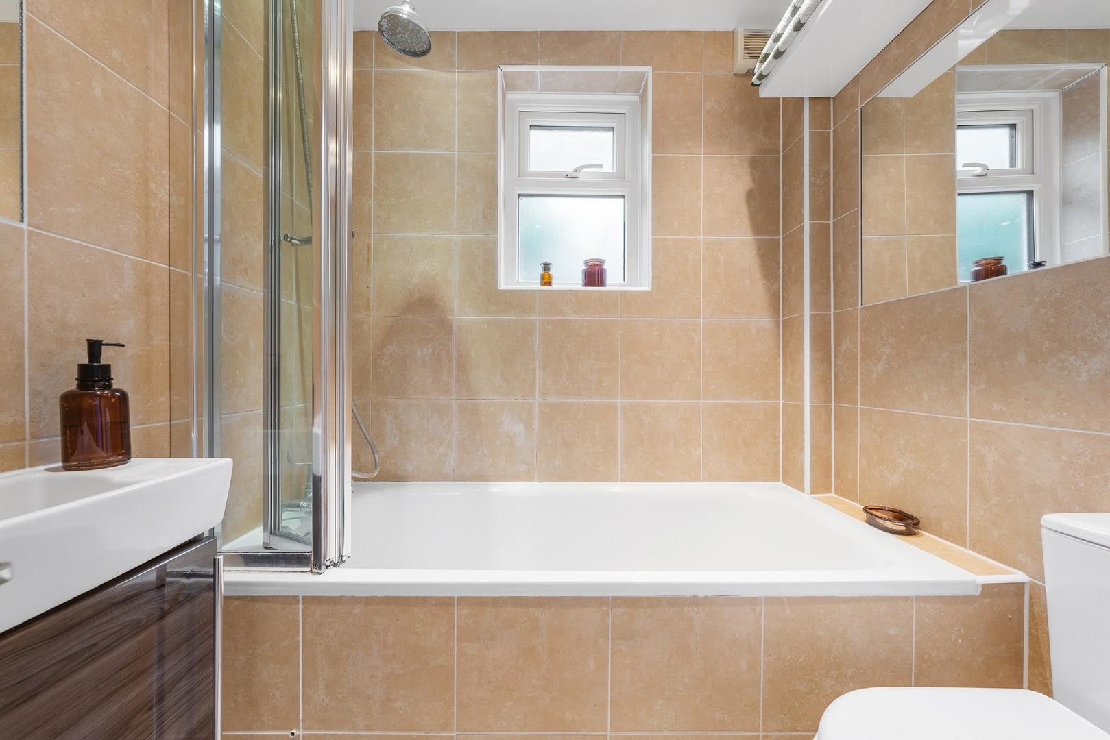 There is also potential to extend above the kitchen or create a roof terrace with impressive city skyline views, including the Shard, subject to the necessary permissions. Further benefits include a fully replaced flat roof (with warranty) completed just 12 months ago, understairs storage, and the warmth of a friendly, community-spirited street. A neutral and thoughtfully designed bathroom competes this unique home, with a bathtub and overhead shower.