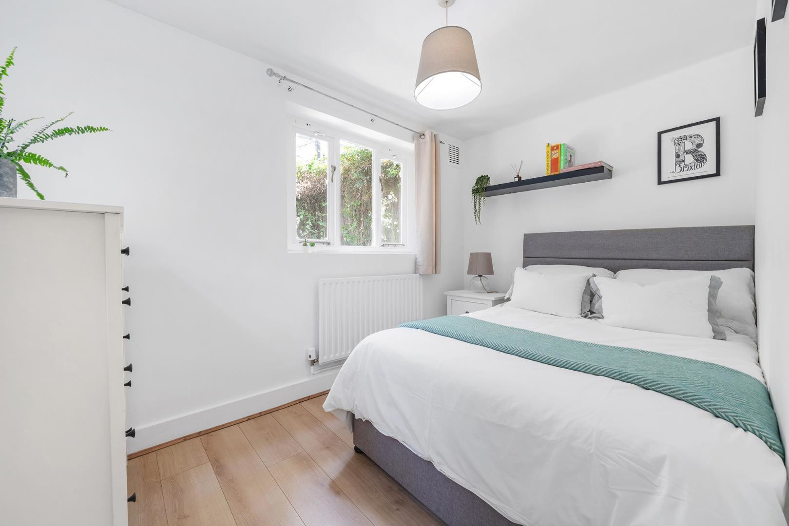 The second bedroom also includes built-in storage and offers a peaceful outlook onto the side of the garden. Bedroom three is quietly positioned at the rear of the flat and also enjoys garden views from a different aspect. This versatile space could serve as a guest room, nursery, or home office, depending on your needs.