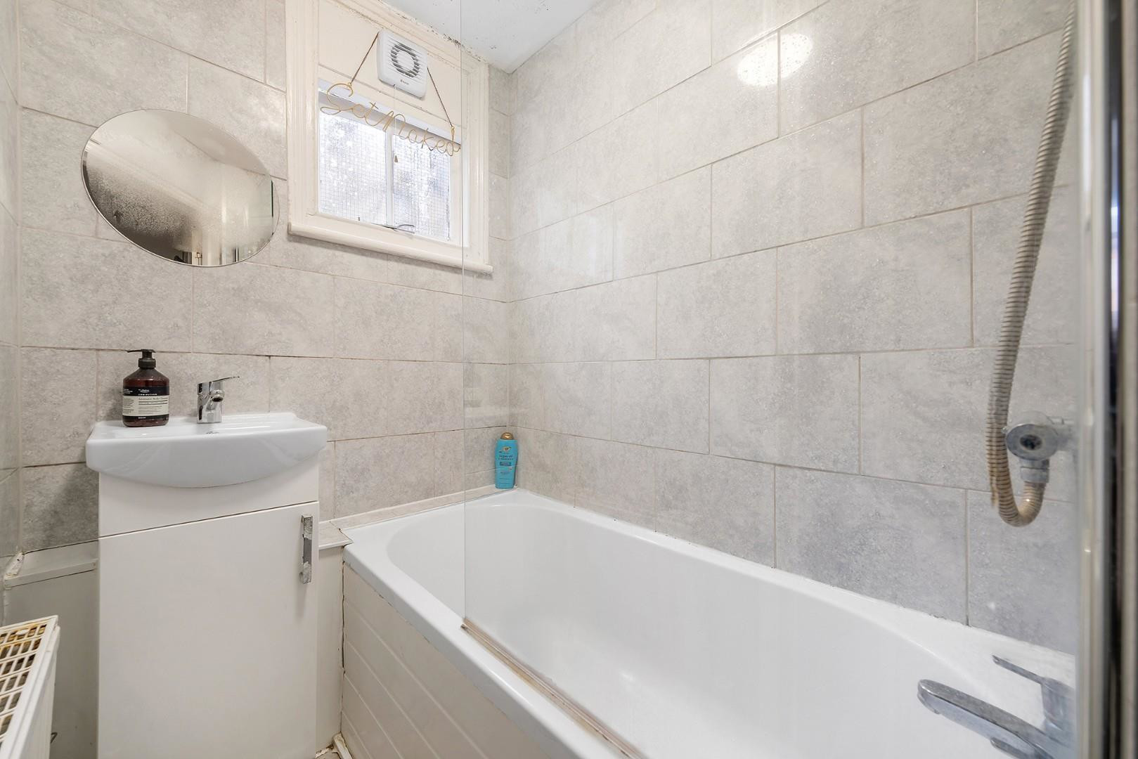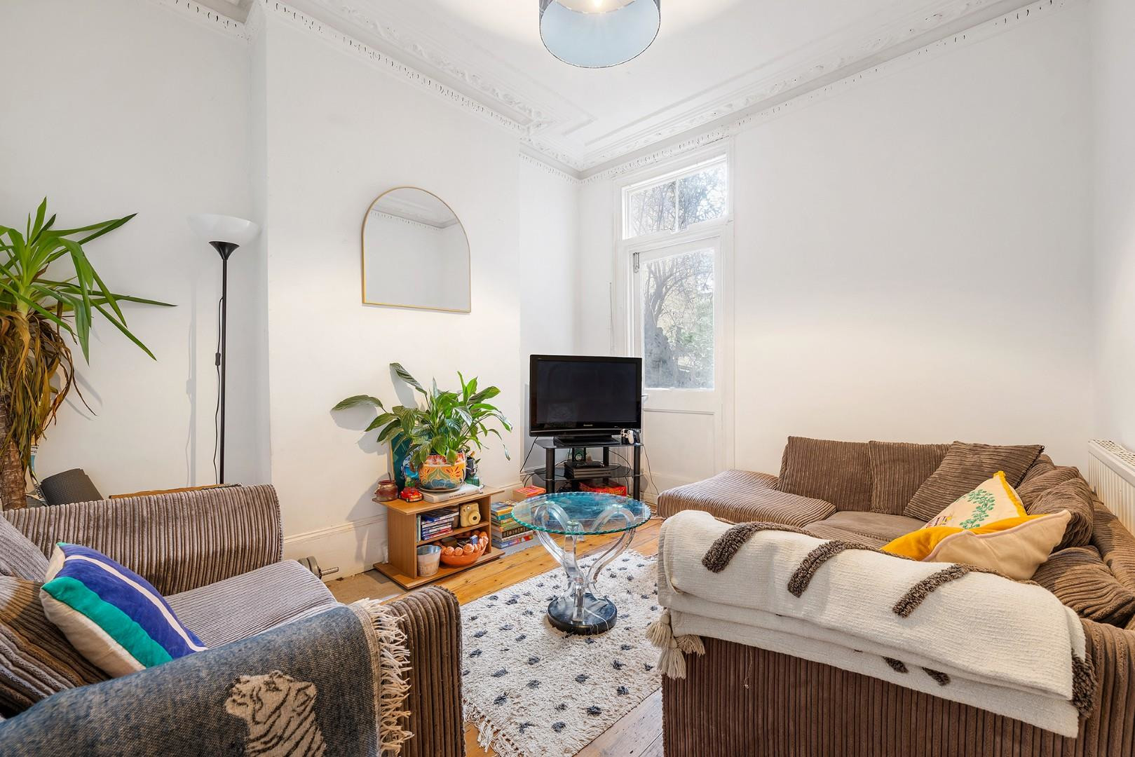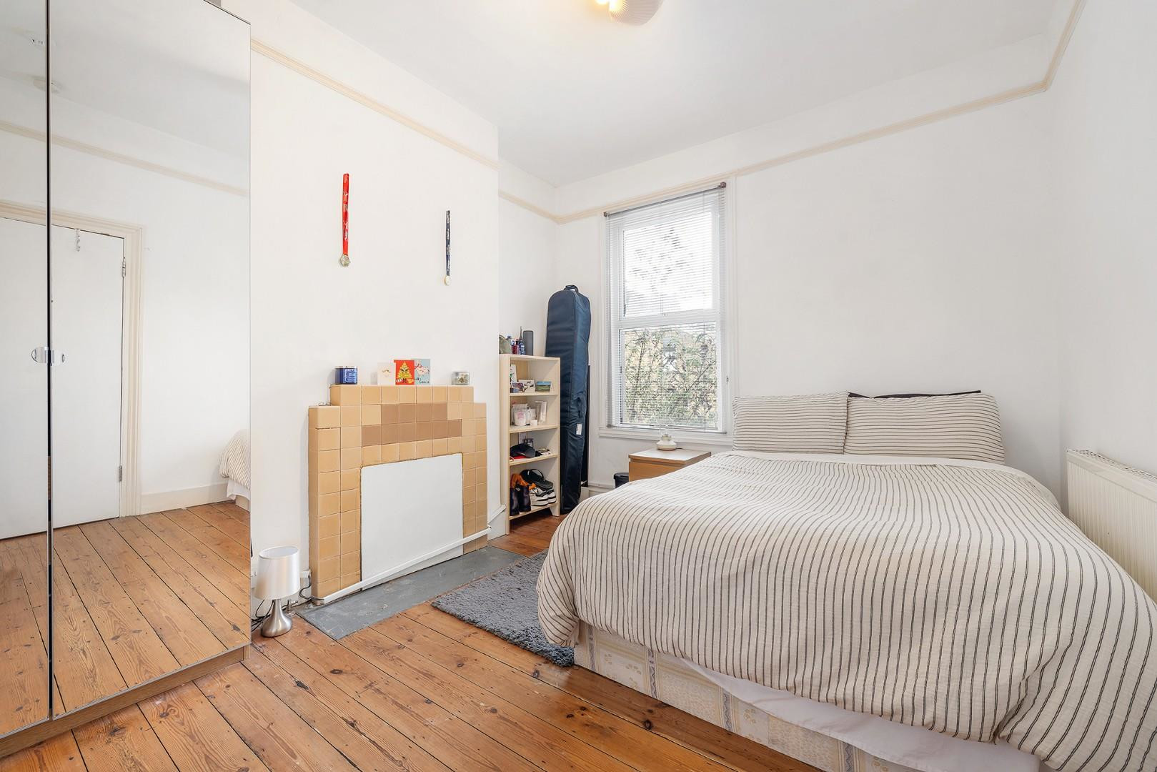 To the front, the first reception room is currently arranged as a spacious double bedroom, boasting high ceilings, a large bay window and original wooden floorboards, creating a bright space, easily re-presented back into an inviting reception room. Adjacent, the second reception features attractive corniced ceilings and exposed floorboards, with direct access through to the garden, making it an lovely setting for entertaining or relaxed evenings at home. Subject to preference, the reception rooms could be combined to create an impressive through-lounge.