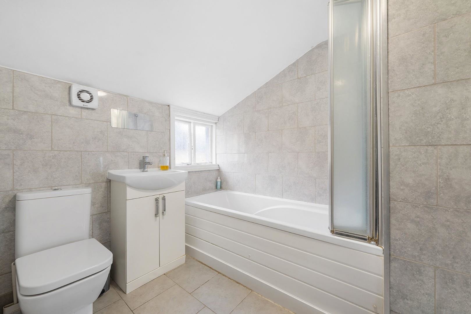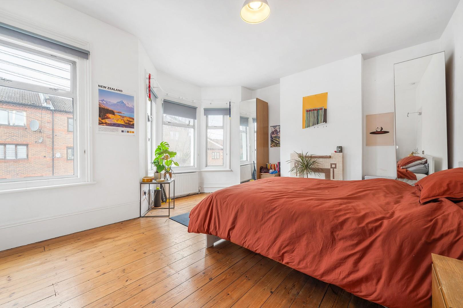 Upstairs, four well-proportioned double bedrooms are arranged across the first floor. The principal bedroom spans the full width of the home, complete with high ceilings, original floorboards, a beautiful bay window and useful alcoves either side of the chimney breast, ideal for fitted wardrobes. The remaining three double bedrooms are nestled to the rear, enjoying leafy outlooks. Two bathrooms, each fitted with a bath and overhead shower, serve the upper floor, one of which benefits from a separate WC to ease busy morning routines, with the option to combine into a second large bathroom if desired.