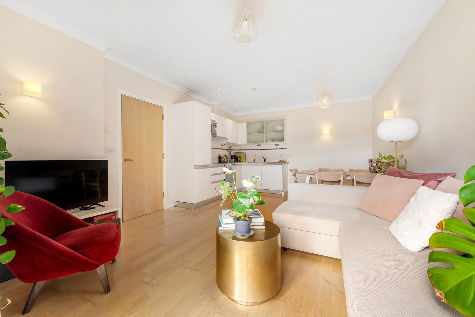 The property opens into a welcoming entrance hall with useful storage and a secure entry system, leading through to a wonderfully bright open-plan kitchen and reception space. This impressive room is clearly zoned to provide comfortable lounge and dining areas, with ample space for entertaining or relaxing at the end of the day. Large glazed doors draw in excellent natural light and open directly onto the standout feature of the home, a substantial private terrace.