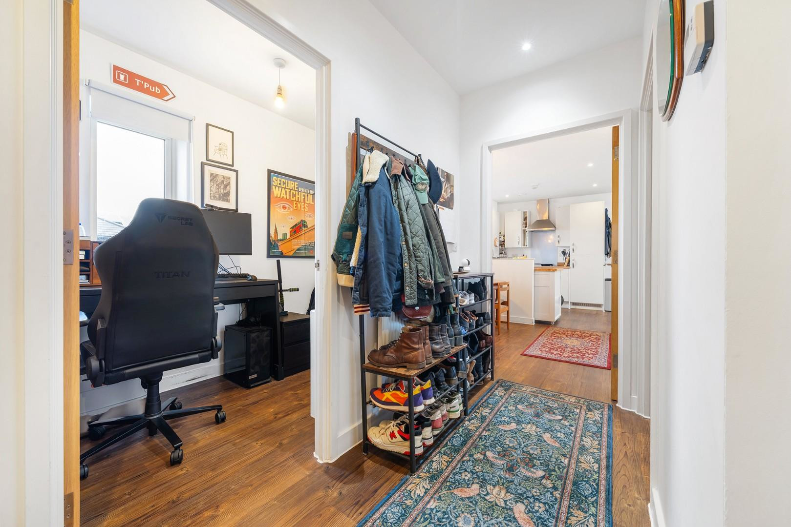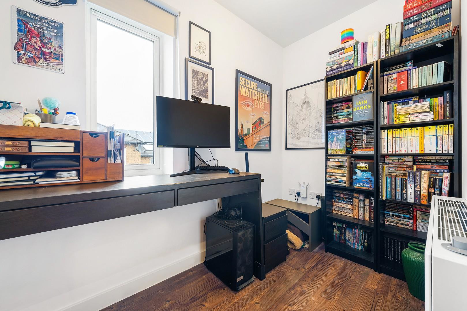 A separate study adds valuable versatility to the property. Currently arranged as a home office, this additional room is ideal for remote working, creative pursuits, a nursery or as a guest room for occasional visitors.