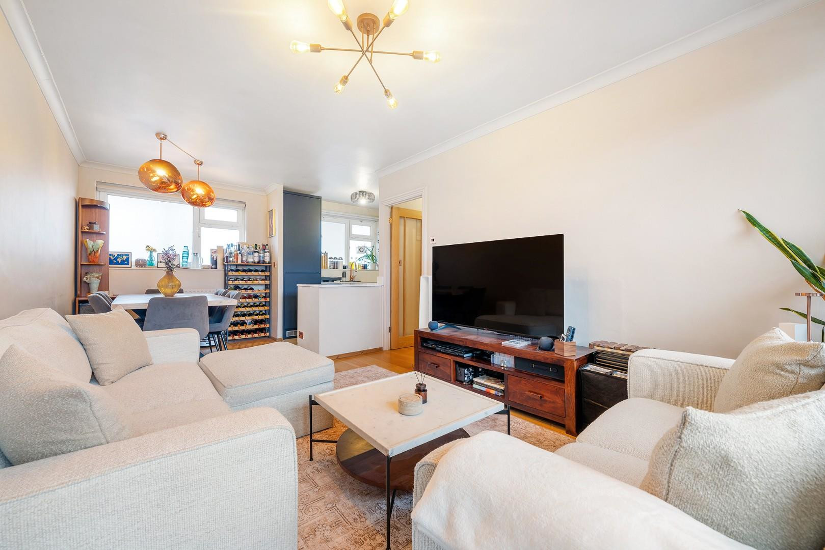 At the heart of the home is the open-plan reception space, ideal for both relaxing and entertaining. The reception area offers ample room for comfortable seating and a dining table, creating a genuinely sociable hub. The renovated kitchen is well appointed with modern handleless cabinetry, plentiful worktop space and integrated appliances, thoughtfully designed with both style and practicality in mind. The seamless flow between the kitchen and reception area enhances the sense of openness, while large windows allow natural light to flood the room.
