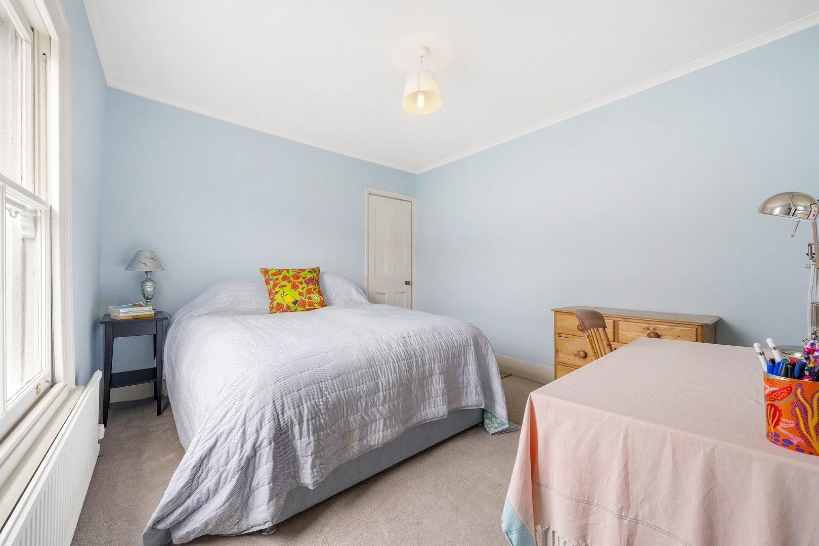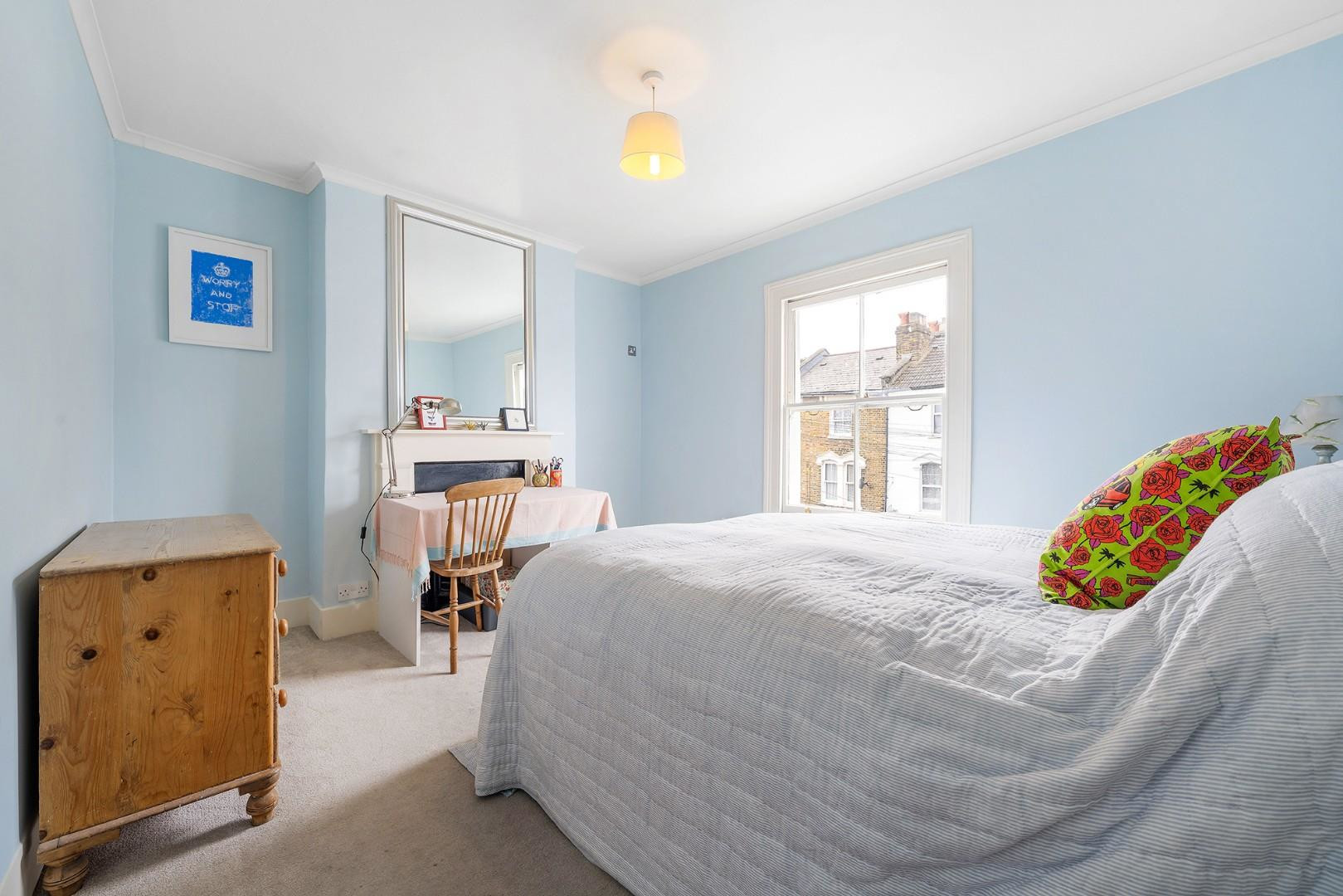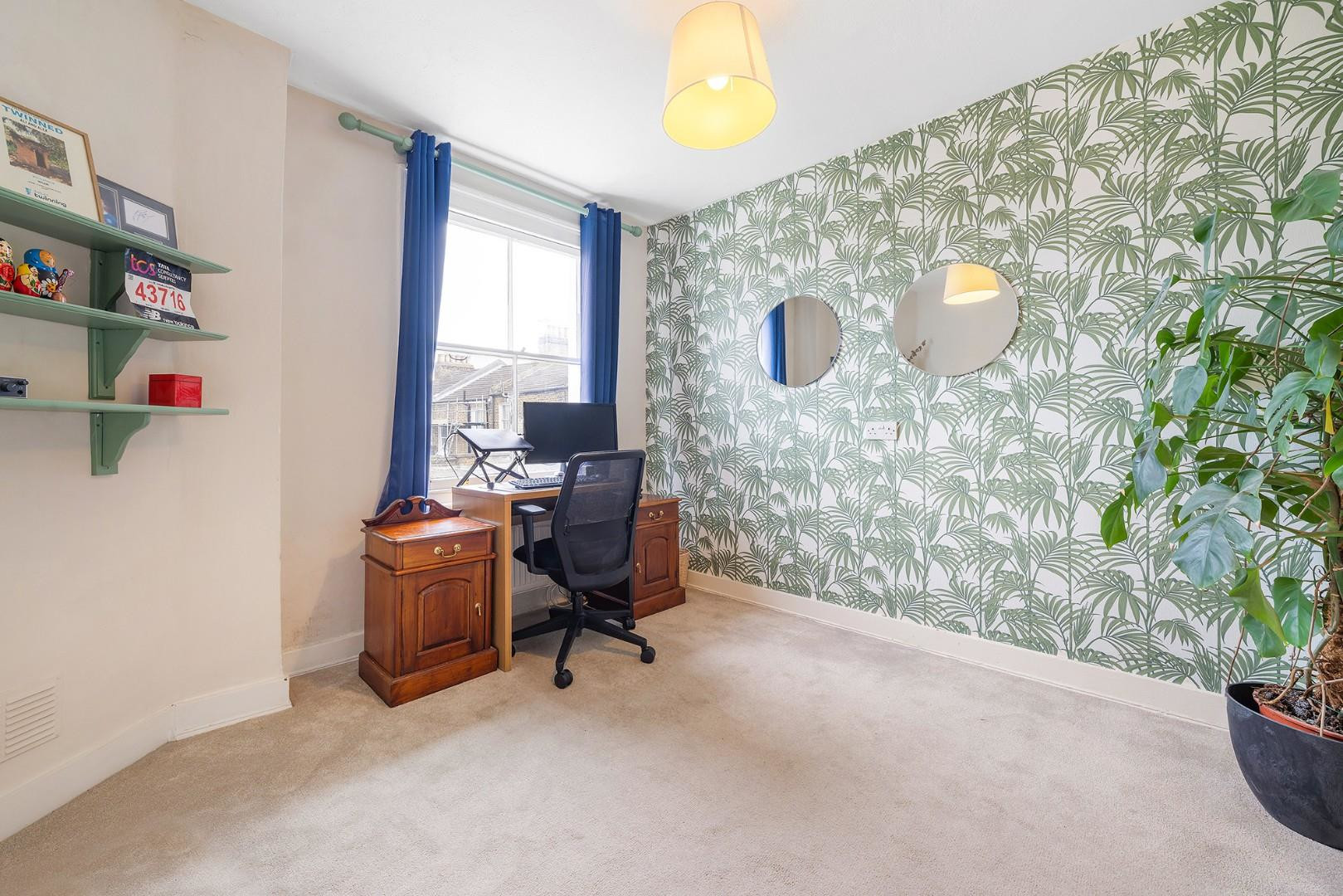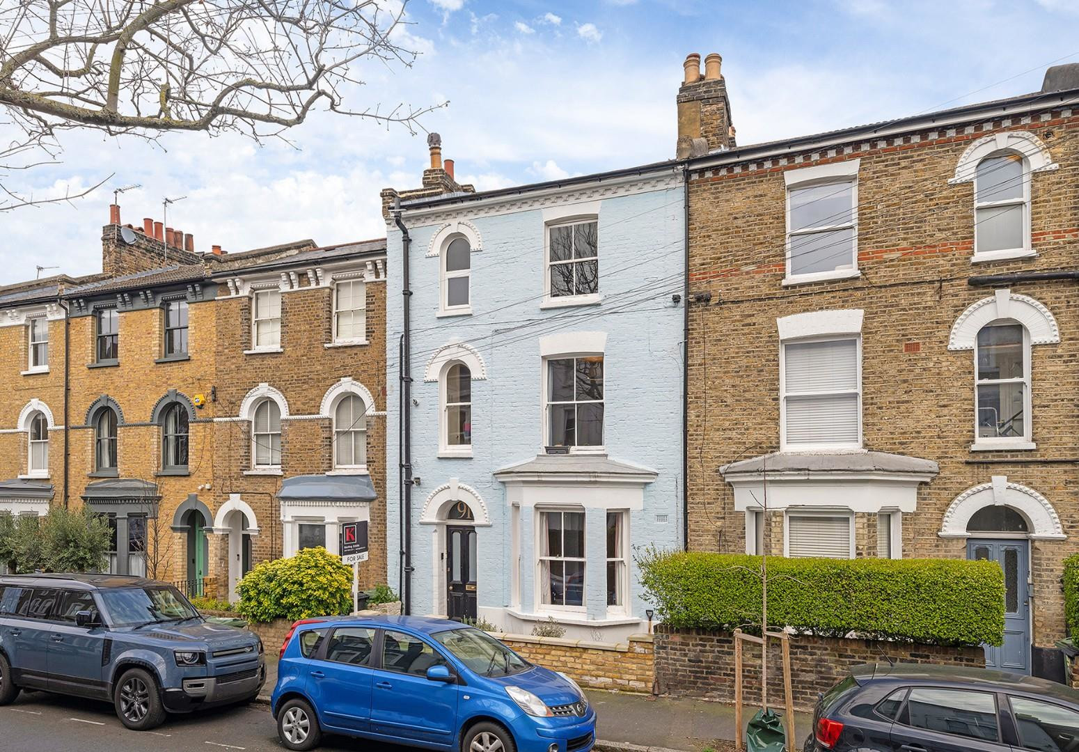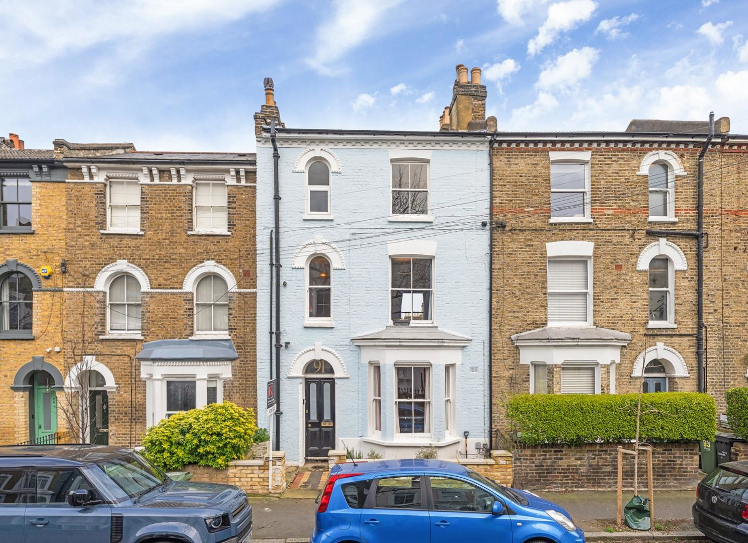 Spanning over 950 square feet, with the additional benefit of a large demised loft space offering exciting potential to extend (subject to the necessary permissions), this versatile home is beautifully presented and filled with natural light. The property boasts excellent kerb appeal, with an attractive blue exterior, black front door and a series of elegant arched windows and door frame, all set behind a low brick wall which was newly installed last year.