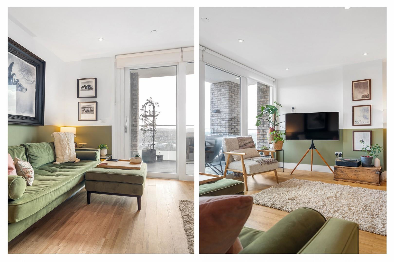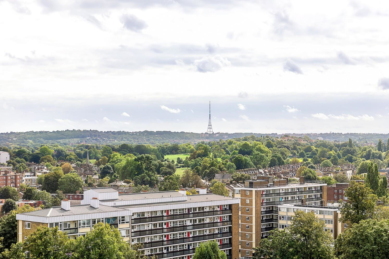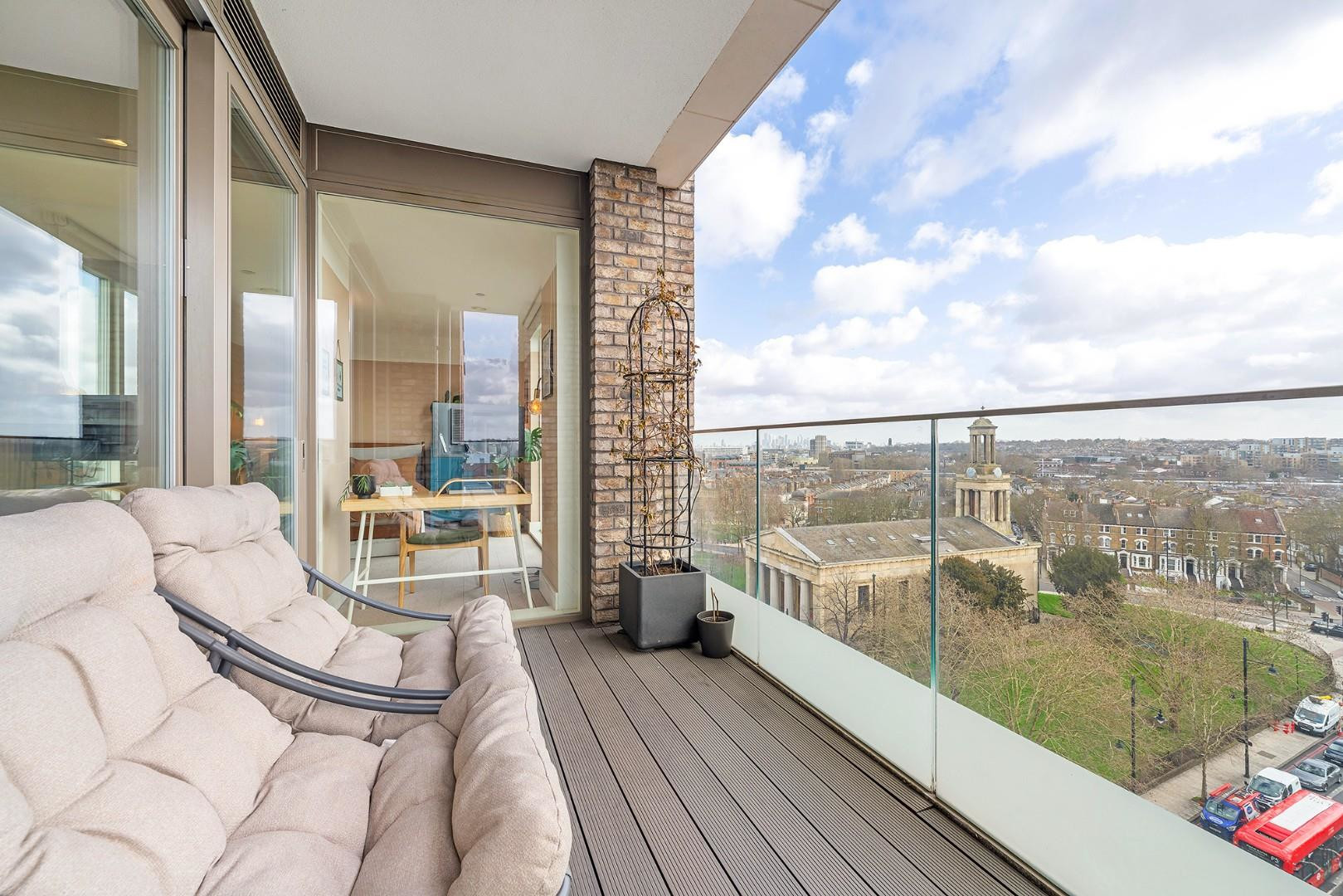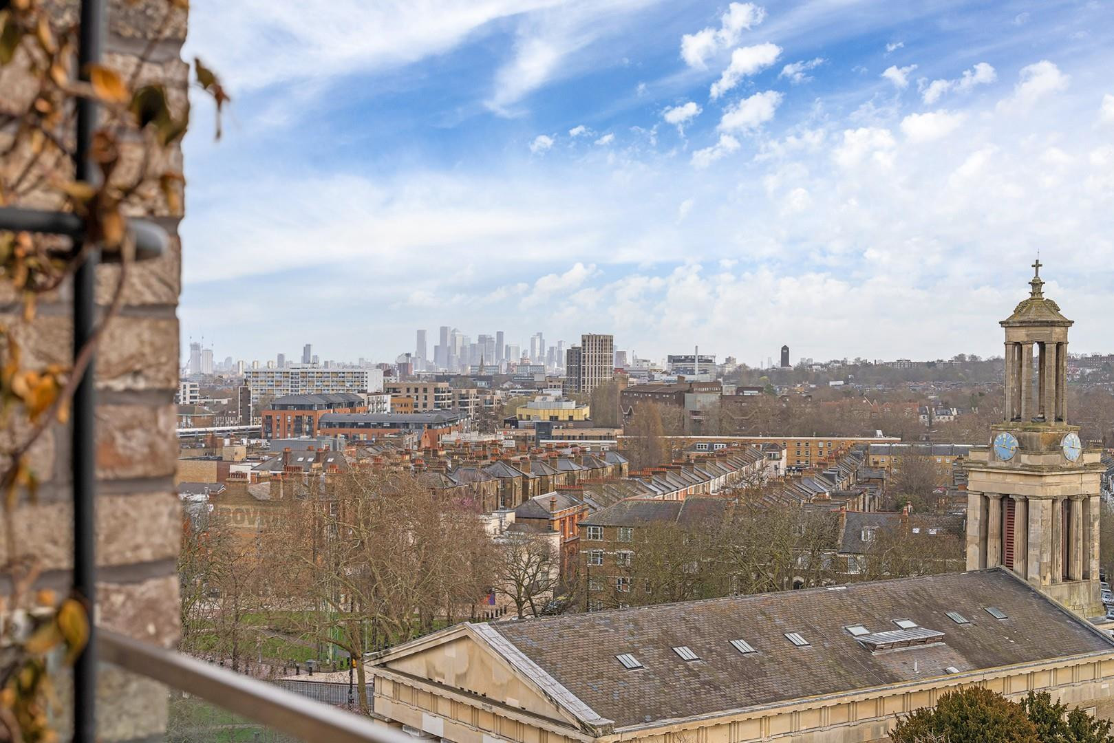 The glass doors open directly onto the private terrace, creating a seamless connection between indoor and outdoor living. This wonderful outdoor space is ideal for enjoying a morning coffee, entertaining guests or simply relaxing while taking in the impressive open views across the surrounding rooftops, towards Brockwell Park, and with views of the City in the distance.