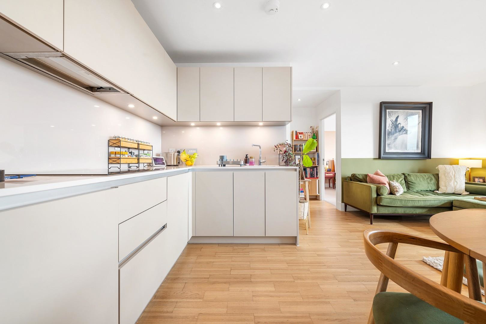 Other selling points include underfloor heating throughout, a welcoming entrance hallway with useful storage and recessed downlighting. The building benefits from lift access, time still remaining on a 10-year building warranty, handy secure bike storage, lockers for parcels, a resident's garden and a large resident's roof terrace with further impressive views across the area.
