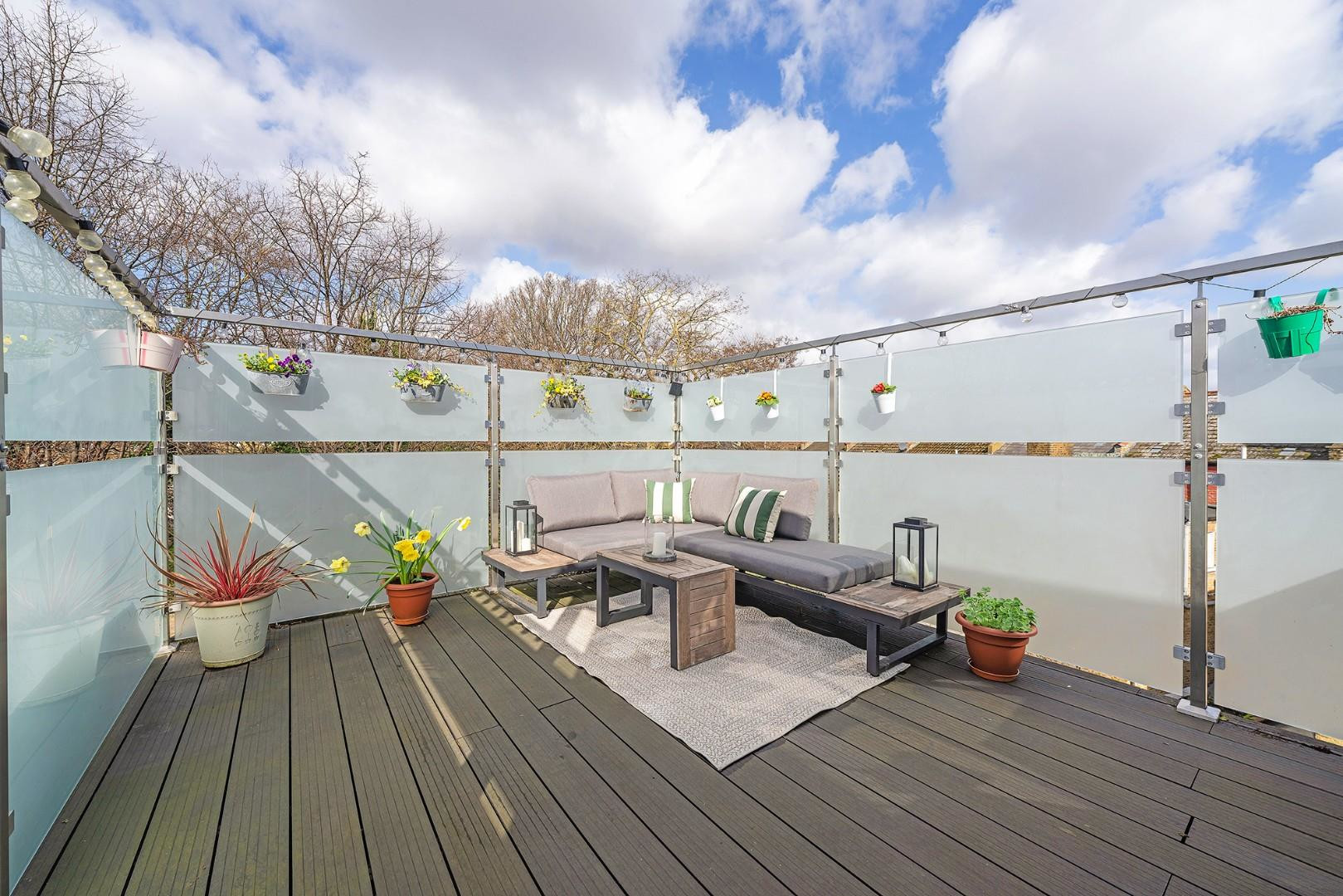 Sure to impress, the private roof terrace, completed in 2024, is a wonderful outdoor retreat finished with decking and compliant safety railings, creating shelter whilst adding privacy. This elevated space offers a low-maintenance and peaceful spot to enjoy a morning coffee, dine outdoors or unwind under the stars.