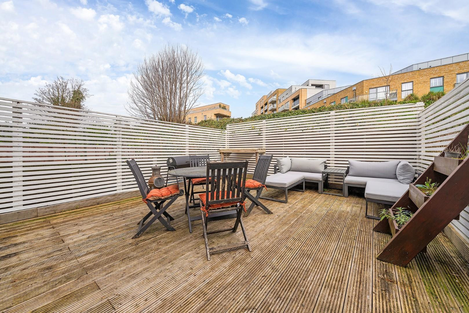 The private garden is a standout feature of the property. Generously sized and thoughtfully designed, it offers ample space for outdoor dining, lounging and entertaining throughout the warmer months. Decked flooring and slatted fencing provide a sense of privacy. Whether hosting friends or enjoying a quiet morning coffee, this outdoor space is a true extension of the living accommodation.