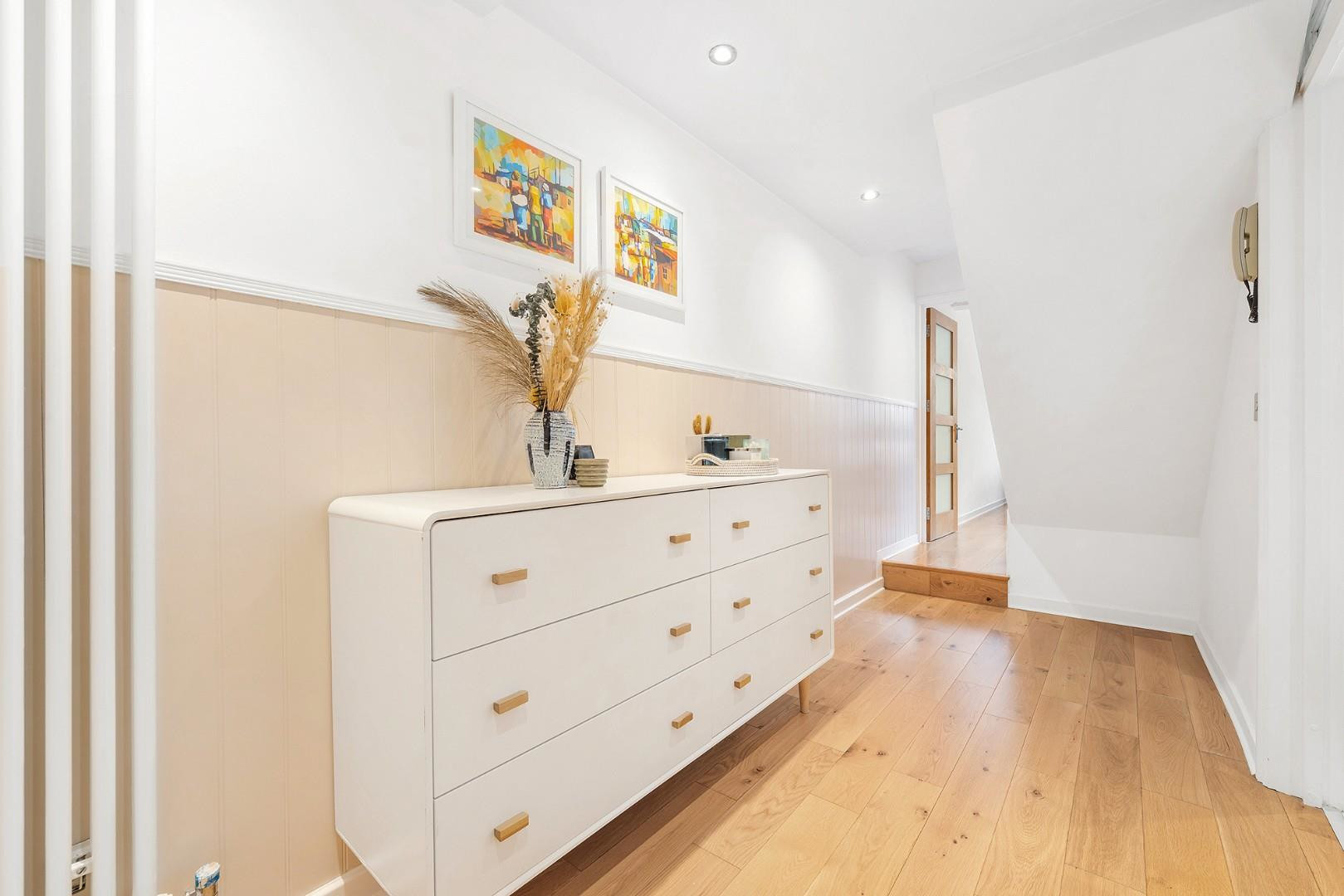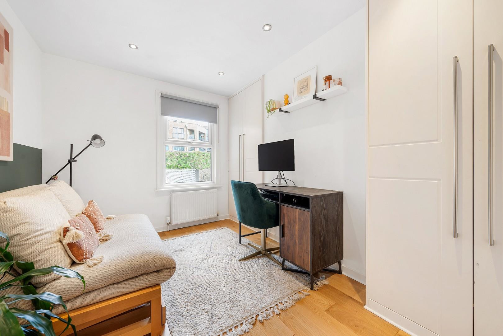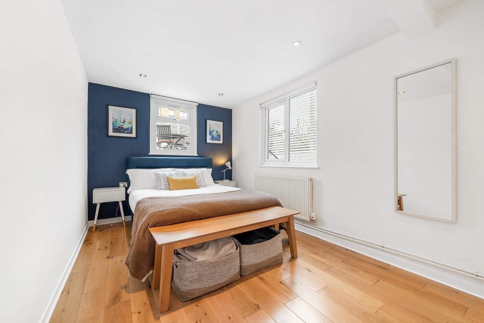 The second bedroom is also a well-proportioned double with double-aspect windows and views of the garden. Positioned to the rear of the property, it offers a peaceful environment for a restful night’s sleep.