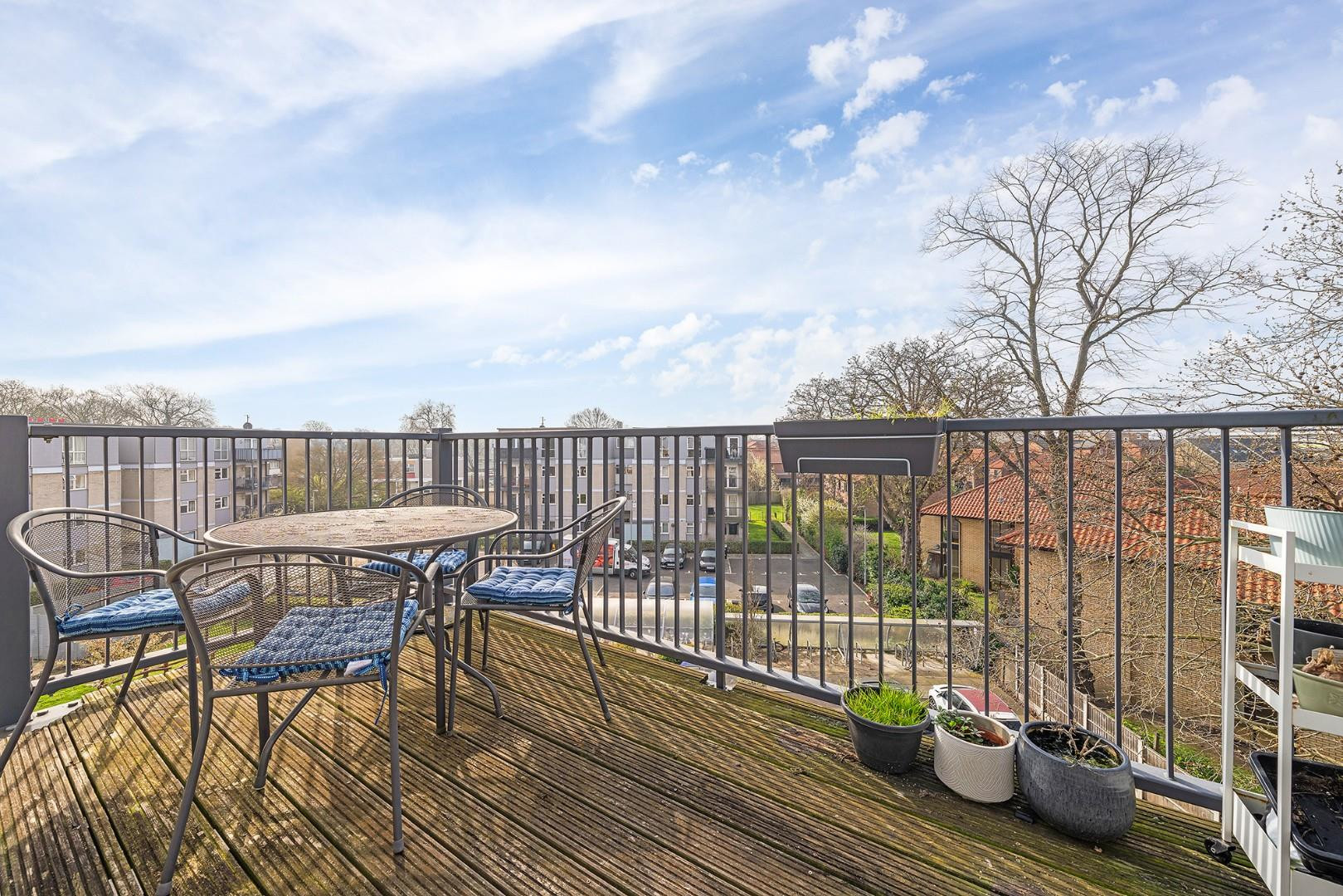 Leading directly from the reception, the private south-facing terrace offers a wonderful extension of the living space. With room for outdoor furniture and potted plants, it’s a peaceful and sun-drenched spot in which to enjoy a morning coffee or unwind in the evening whilst overlooking the surrounding greenery.