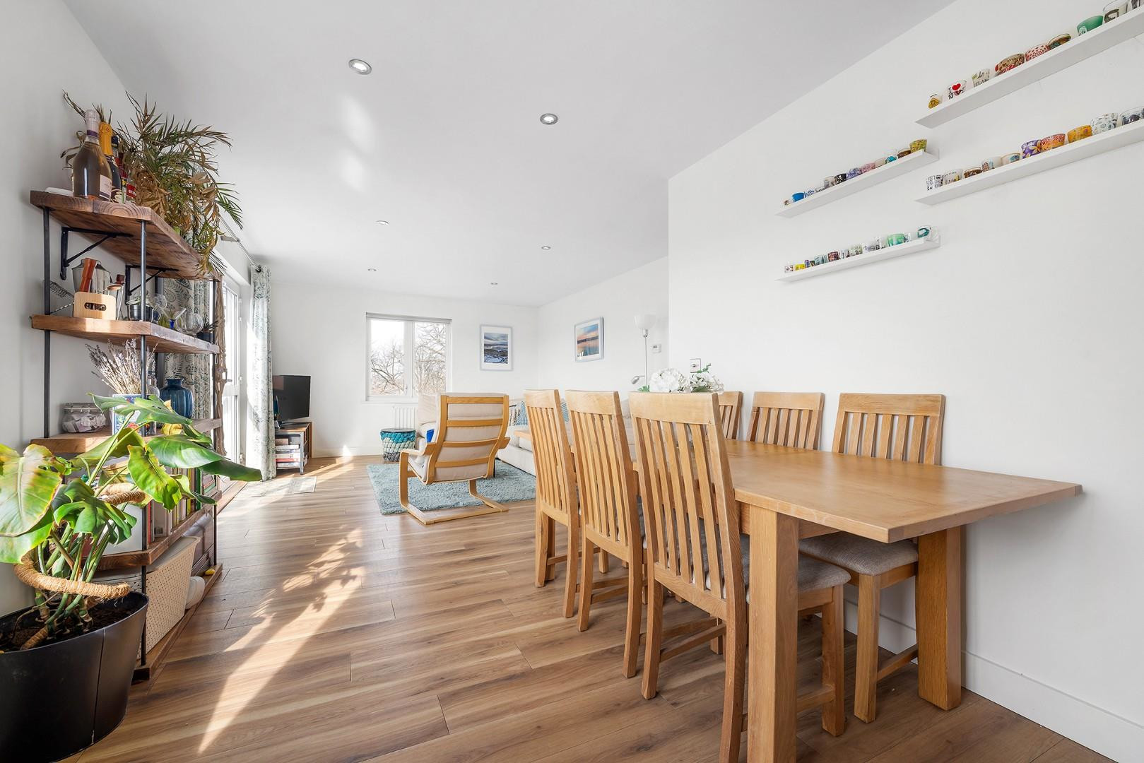 The heart of the property is the expansive open-plan reception and dining room, a fantastic entertaining space flooded with natural light from large windows and glazed doors. There is ample room to relax, dine and work from home, with a clearly defined seating area and plenty of space for a full dining table, making it ideal for hosting family and friends.