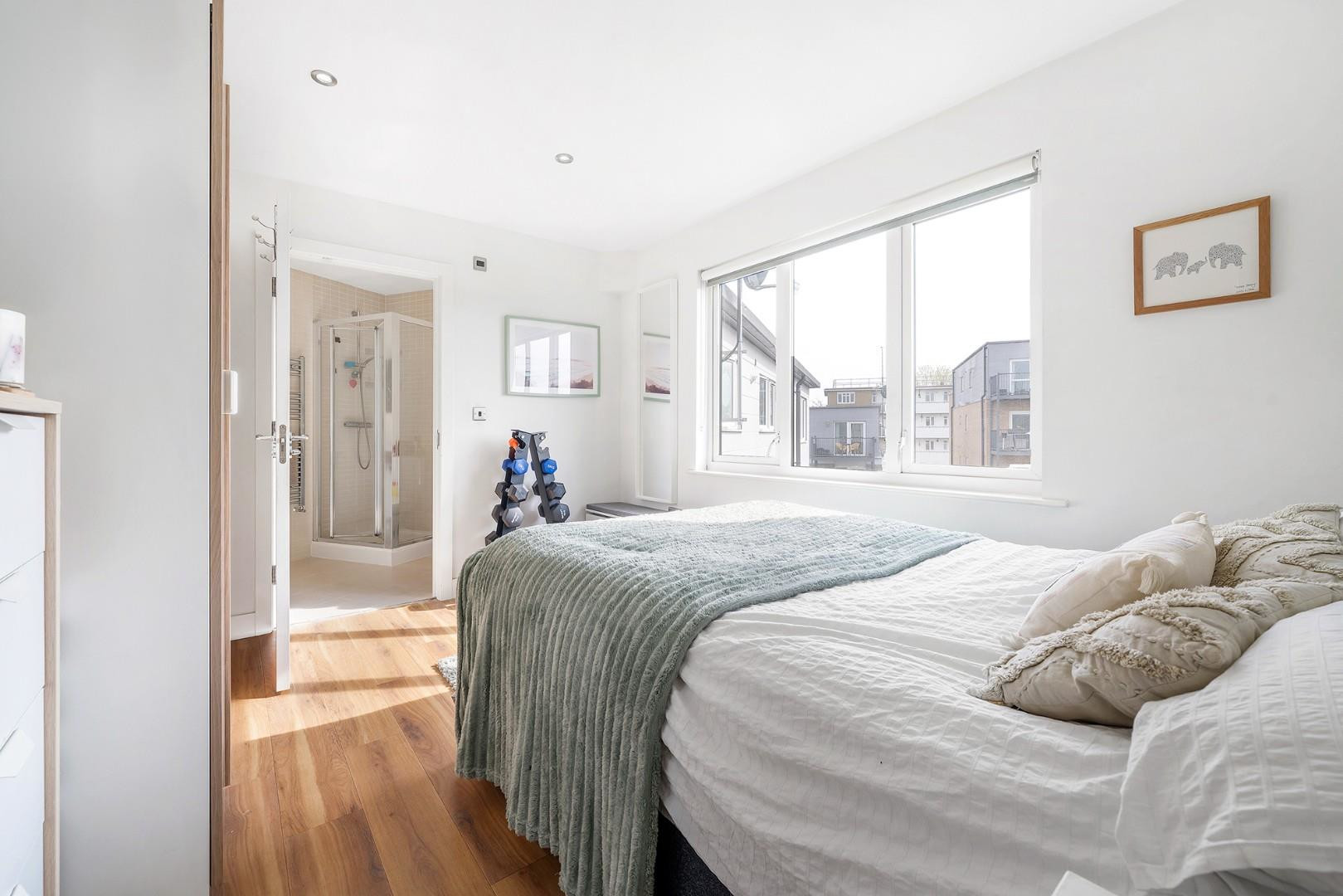 All three bedrooms are genuine doubles, each offering comfortable proportions and plenty of natural light. The principal bedroom benefits from a contemporary en-suite shower room, creating a calm and private retreat. The remaining two bedrooms are equally well-sized, ideal for guests, children, somewhere to work from home or indeed to rent out.
