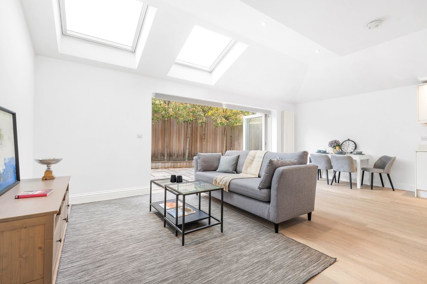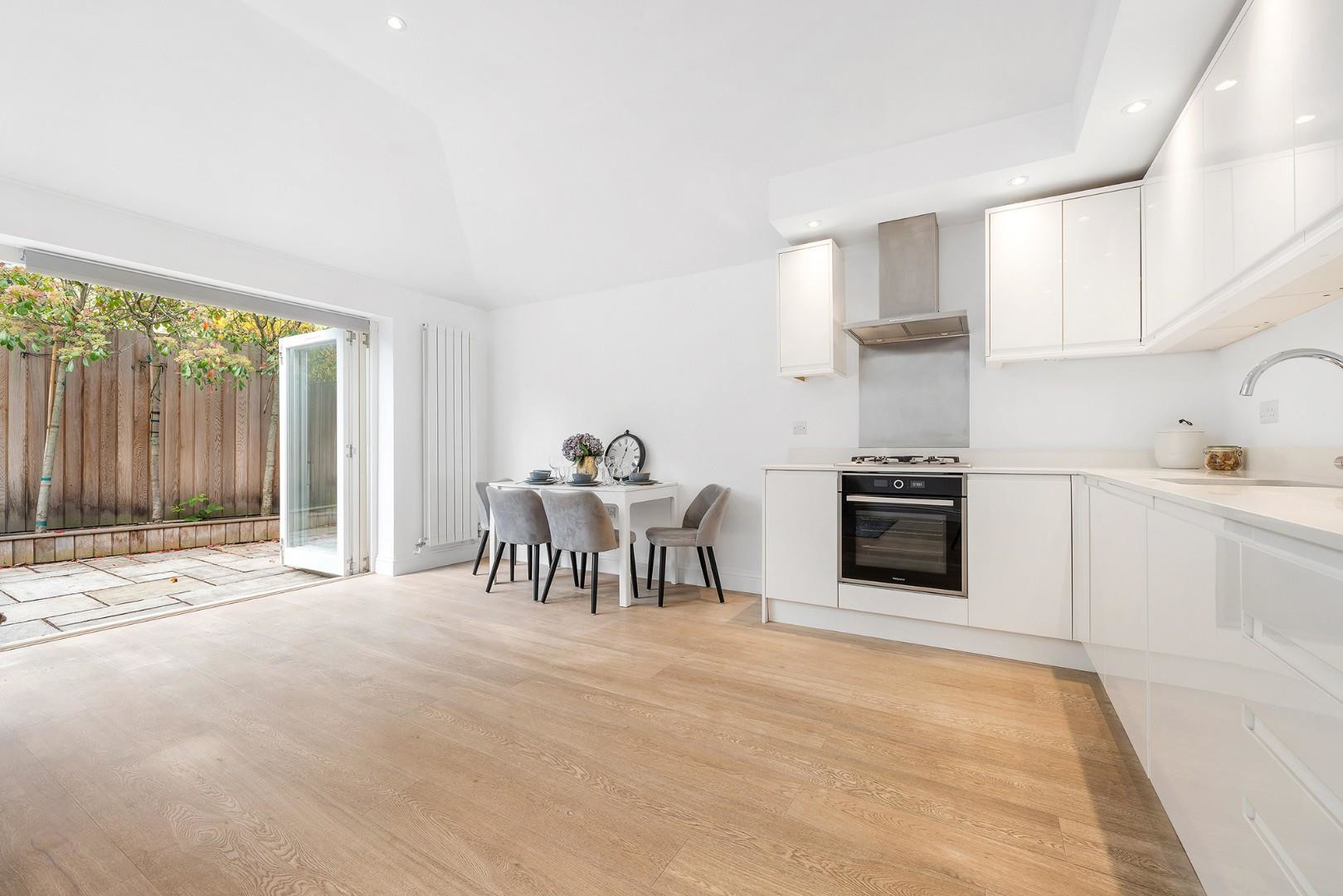 To the rear, bi-folding doors open directly onto the private South-West facing garden, a low-maintenance outdoor retreat perfect for al fresco dining and summer gatherings. In addition, a charming side courtyard provides a further outdoor space and practical access to the front of the property via a side gate.
