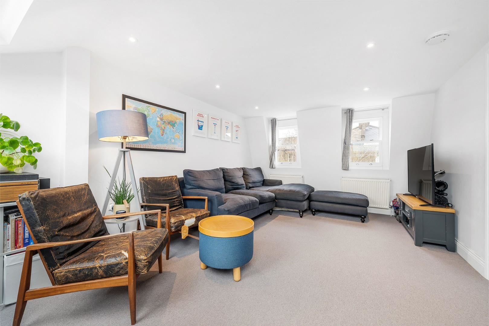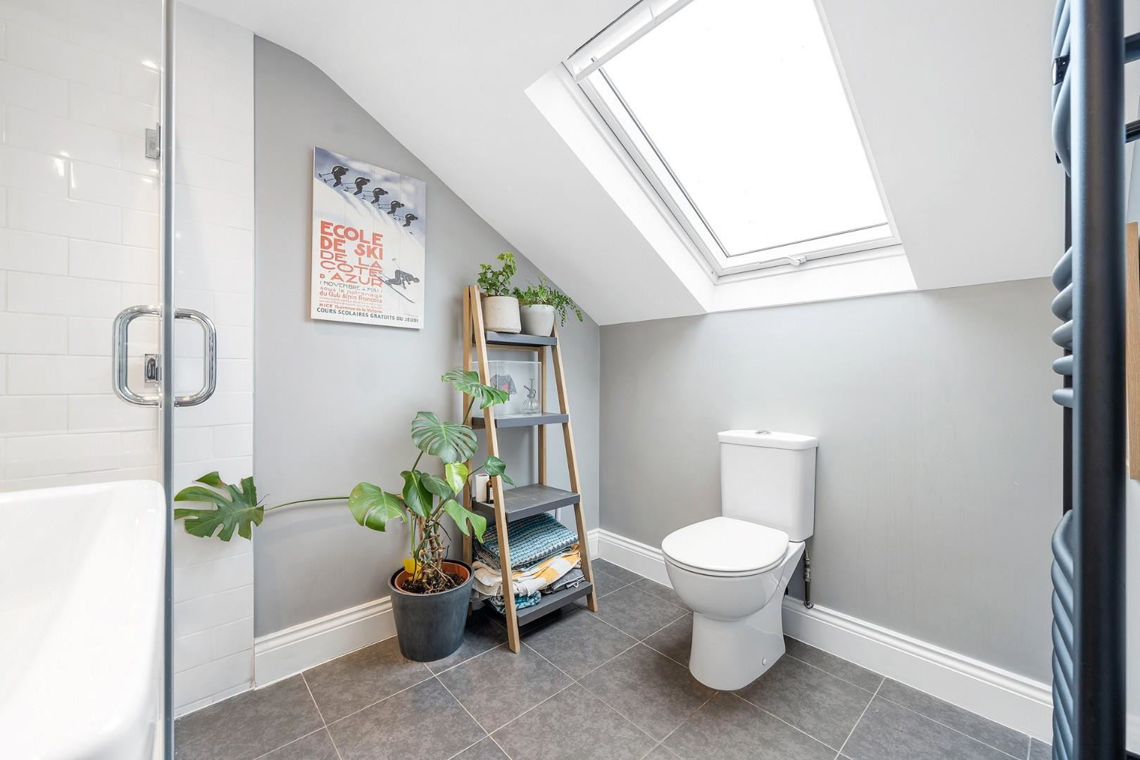 All three bedrooms are well-proportioned doubles and are thoughtfully separated from one another, enhancing a sense of privacy within the home. The principal suite occupies the top floor, enjoying a sense of seclusion and featuring a stylish en-suite with a luxurious walk-in rain shower. Currently arranged as a second lounge and home office, this expansive space is bathed in natural light from multiple windows and skylights and highlights the flexibility of the accommodation, complete with access to eaves storage.