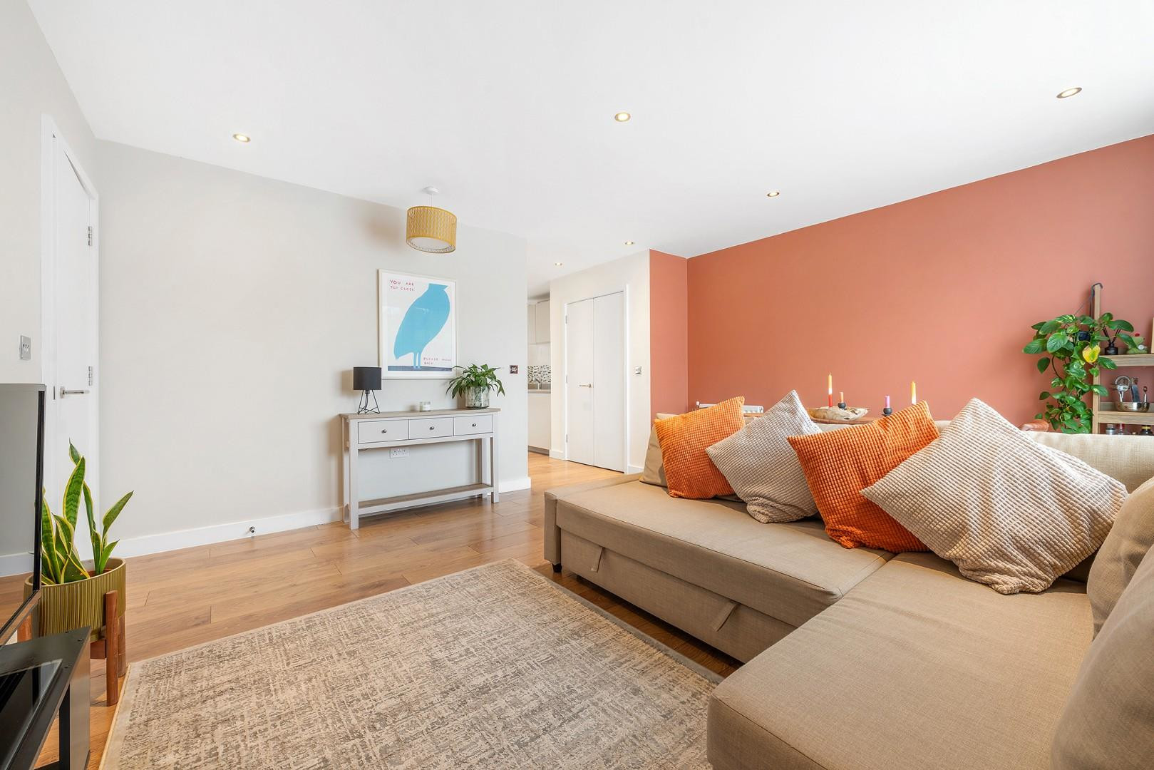 The principal bedroom is a spacious double, a calm and peaceful space with two large pane windows and abundant wardrobe allowance. Also a comfortable double, the second bedroom benefits from the same large pane windows and provides a space that can be repurposed to suit the needs of the purchaser, whether as a rentable double or home office and guest room as it is currently set up. Adjacent sits a spacious luxury bathroom with a high standard of fittings. The flat has been built with modern living in mind, including high energy efficiency and premium finishes throughout. There is added storage in the form of a large utility cupboard in the hallway, ideal for hiding away all those items not needed on a daily basis.