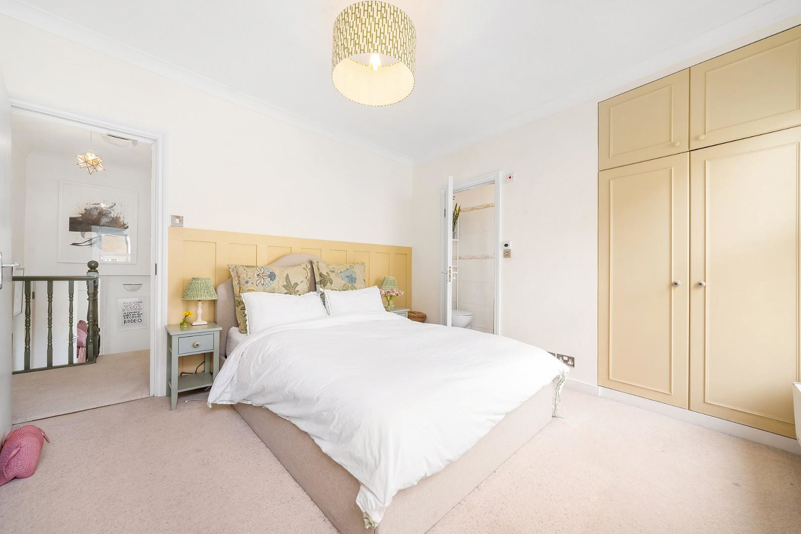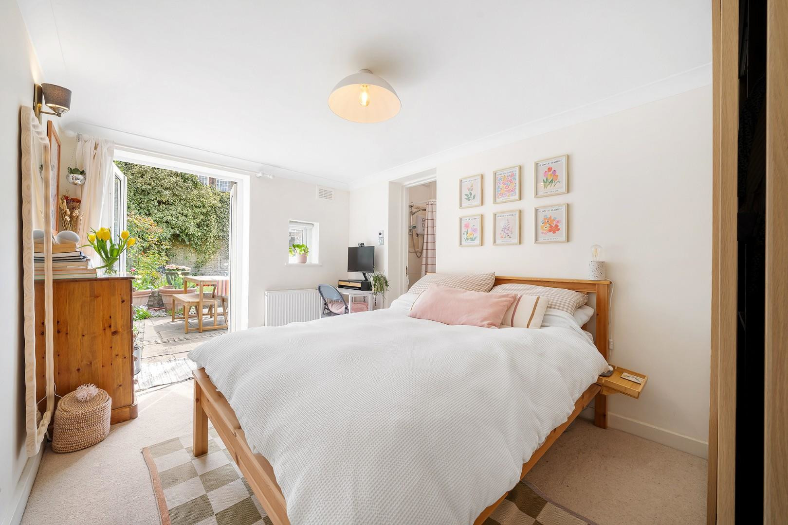 Also on the ground floor is a well-proportioned double bedroom with French doors opening onto the garden, complete with its own en-suite bathroom, making it an ideal guest suite or flexible living space.