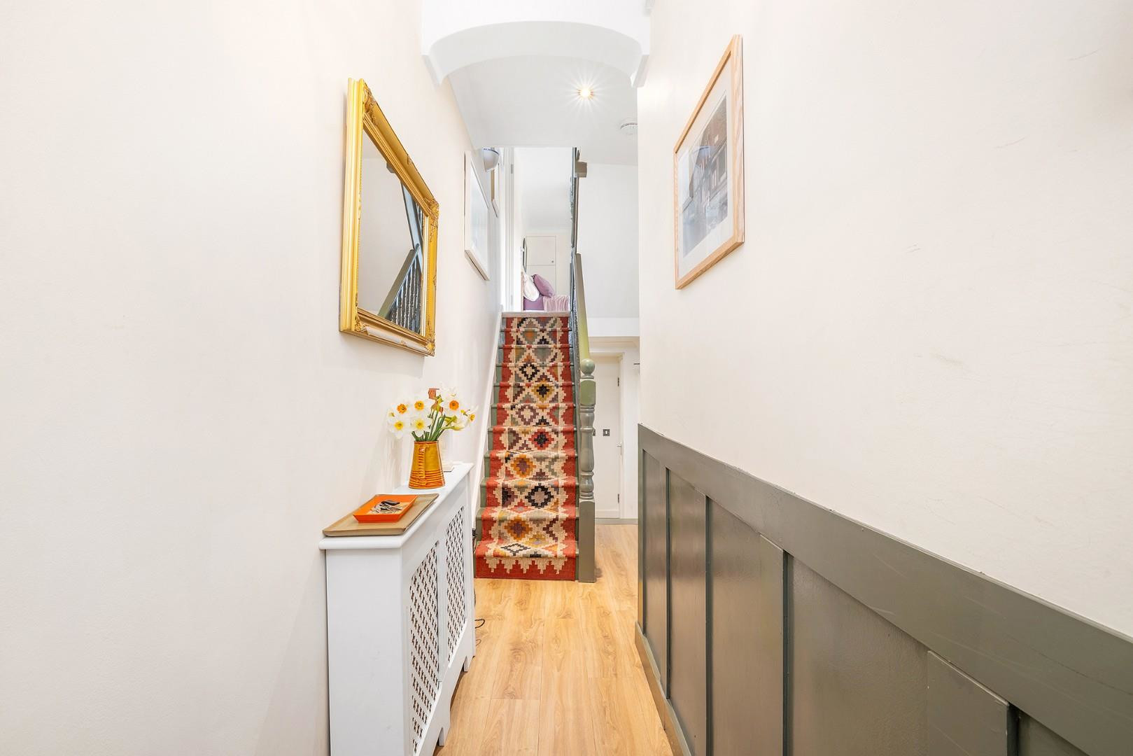 Set behind an attractive Victorian façade, the property opens into a welcoming entrance hallway. To the front, a bright and characterful reception room is enhanced by a large bay window, allowing natural light to pour in and creating a warm, inviting space ideal for both relaxing and entertaining.