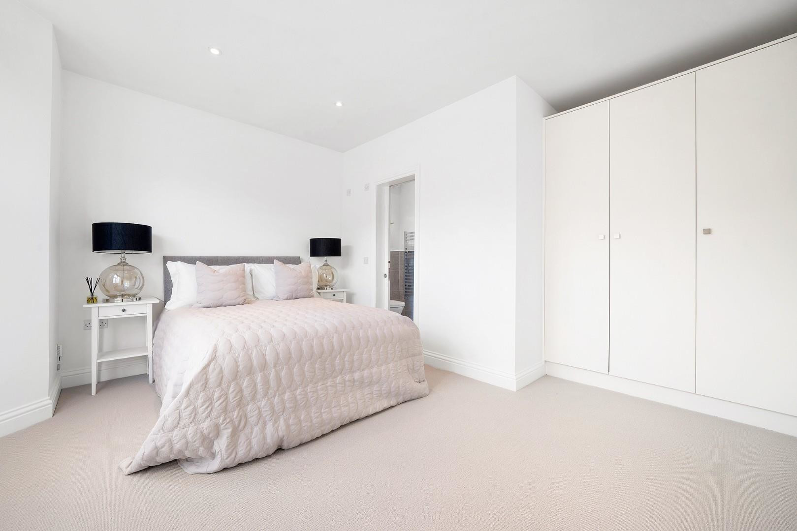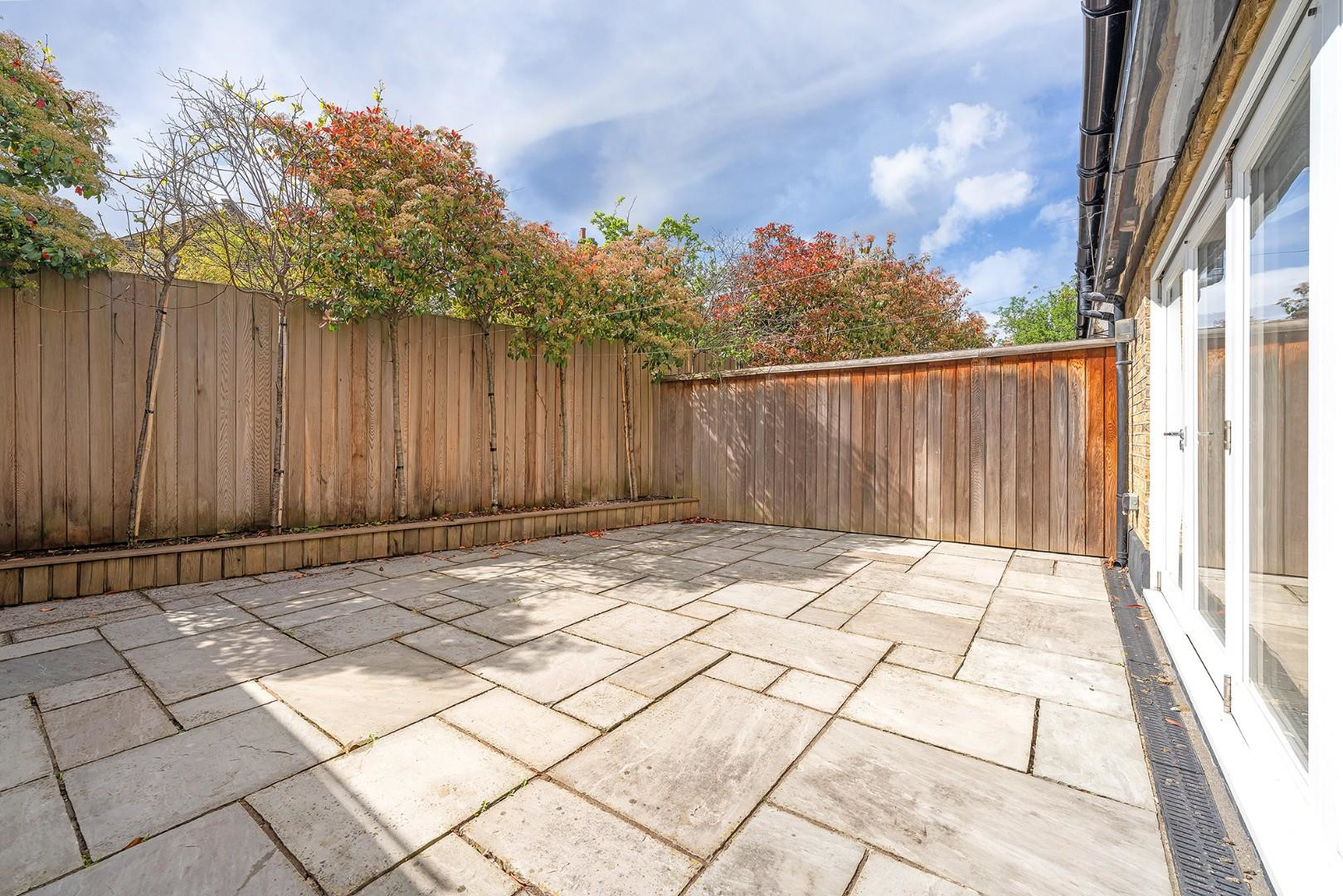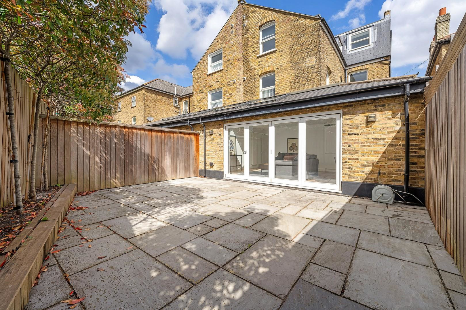 To the rear, bi-folding doors open directly onto the private South-West facing garden, a low-maintenance outdoor retreat perfect for al fresco dining and summer gatherings. In addition, a charming side courtyard provides a further outdoor space and practical access to the front of the property via a side gate, ideal for those with bikes or prams. The front garden is also demised to this apartment, creating the rarity of a wrap-around outdoor space.
