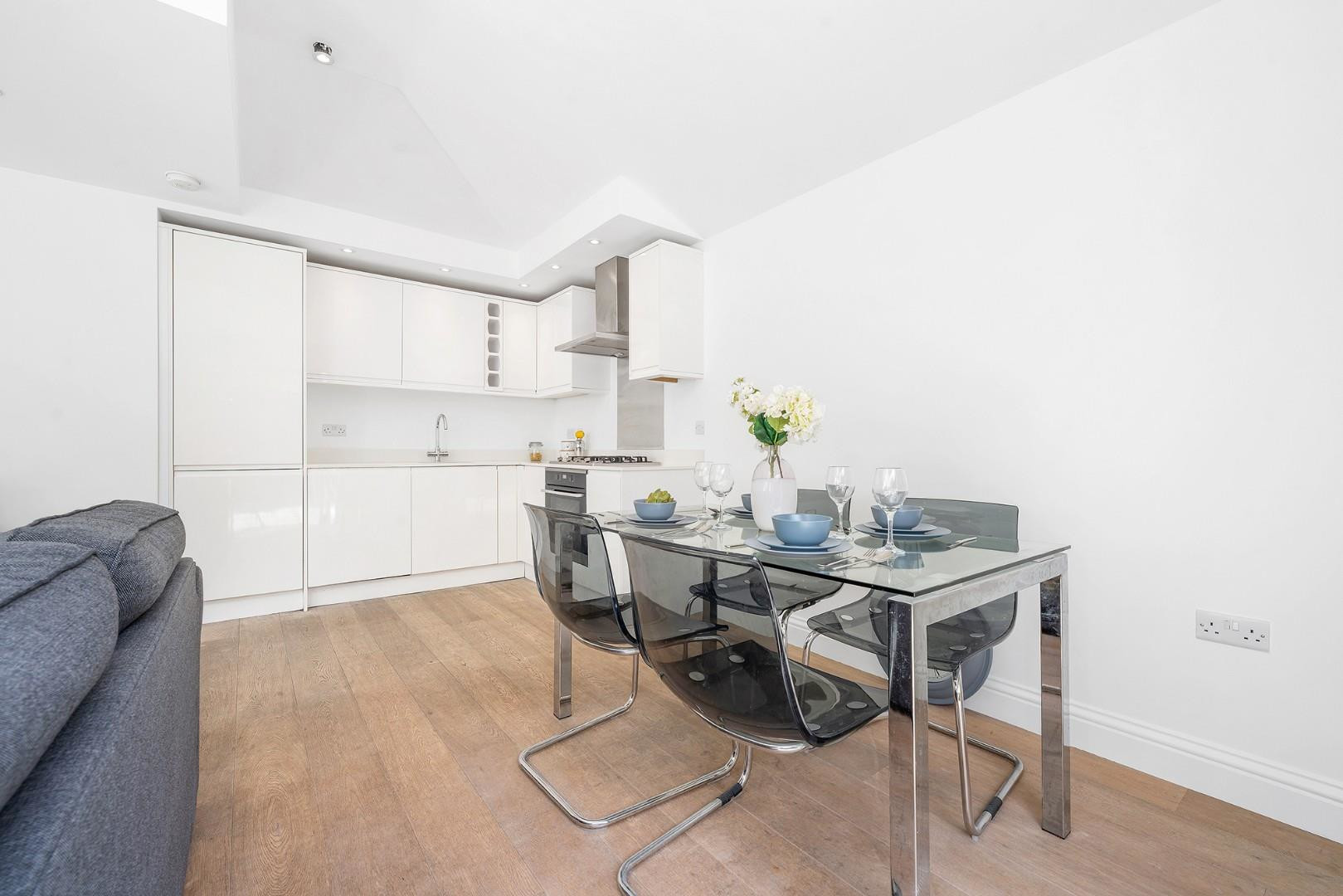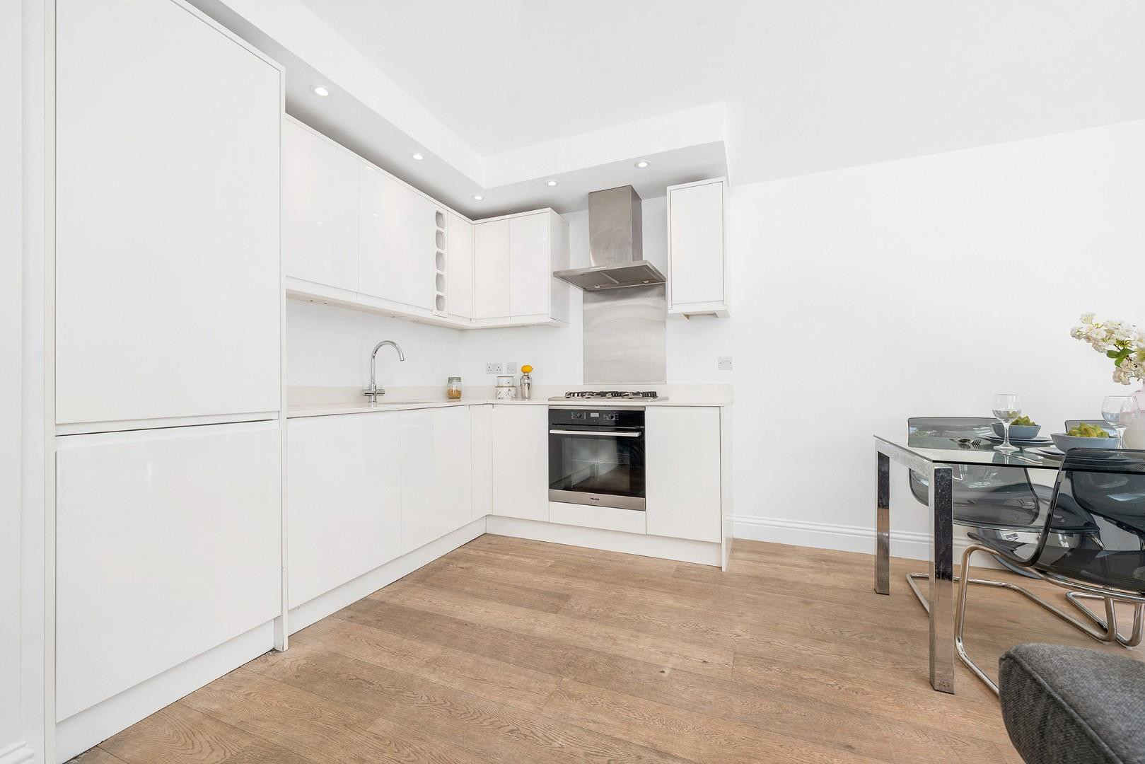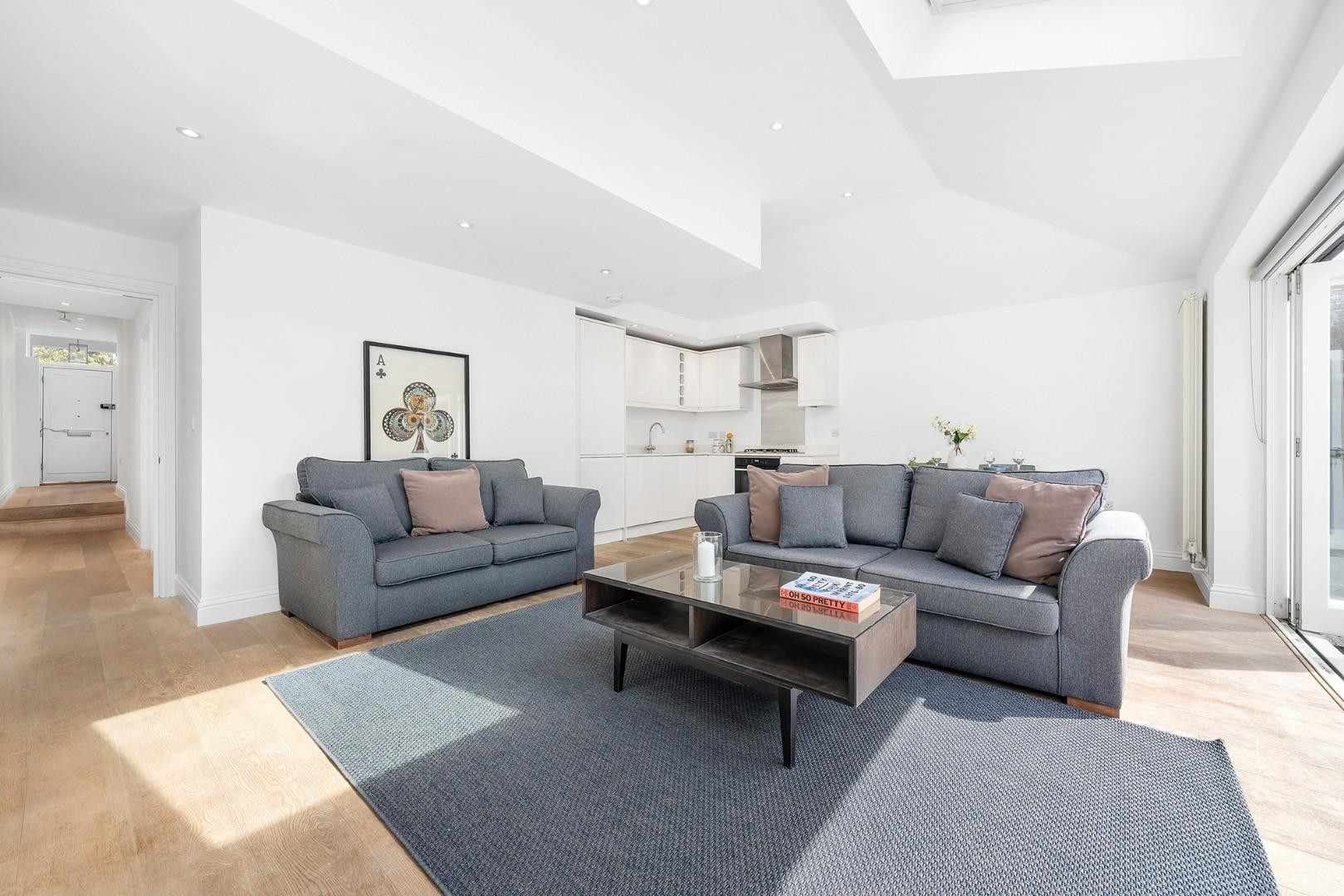To the rear, bi-folding doors open directly onto the private South-West facing garden, a low-maintenance outdoor retreat perfect for al fresco dining and summer gatherings. In addition, a charming side courtyard provides a further outdoor space and practical access to the front of the property via a side gate, ideal for those with bikes or prams. The front garden is also demised to this apartment, creating the rarity of a wrap-around outdoor space.