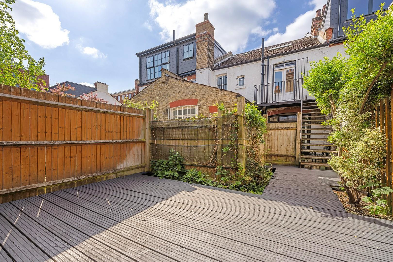 The French doors lead to a step-out terrace, perfect for enjoying a morning coffee, with steps leading down to the private garden. Decked for ease of maintenance the garden provides a lovely spot in which to while away the summer and host BBQs, with the potential to dress with potted plants to add further greenery. A gate to the rear is ideal for those with bikes, or bikes can be secured in the entryway.